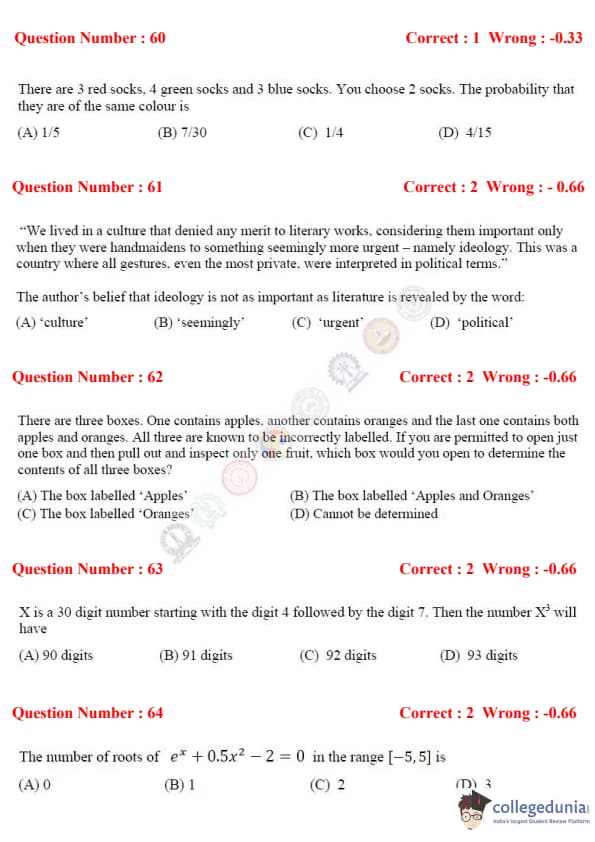 - There were 35 questions carrying 2 marks, while rest of the 30 questions carried 1 mark each