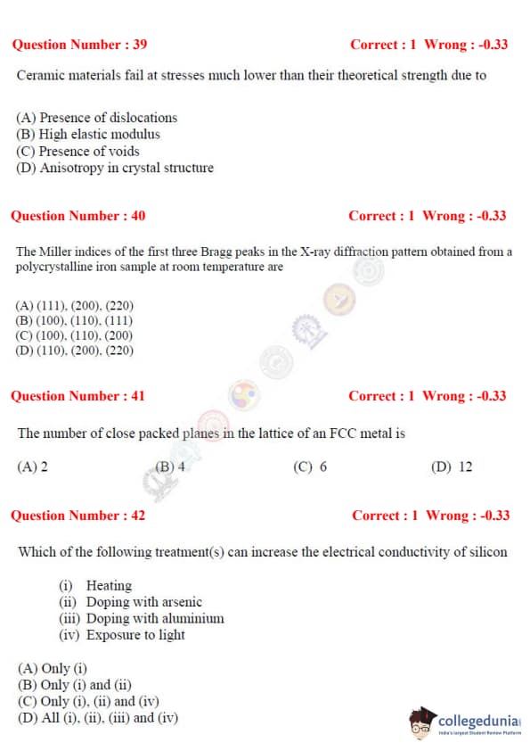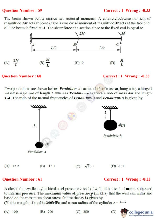 - In Multiple Choice Questions (MCQs), there will be one-third negative marking for the wrong answers in one mark MCQs.