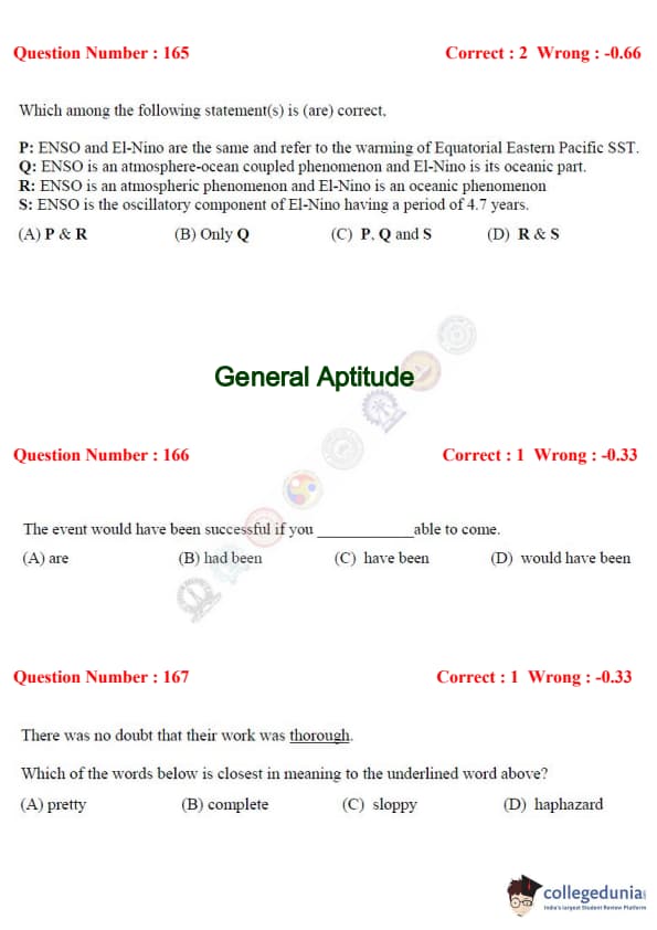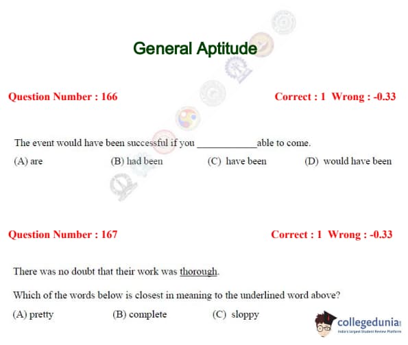 - The Engineering Sciences (XE) paper had two sections: Core Subject and General Aptitude.
