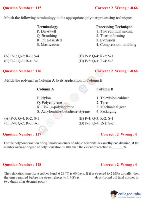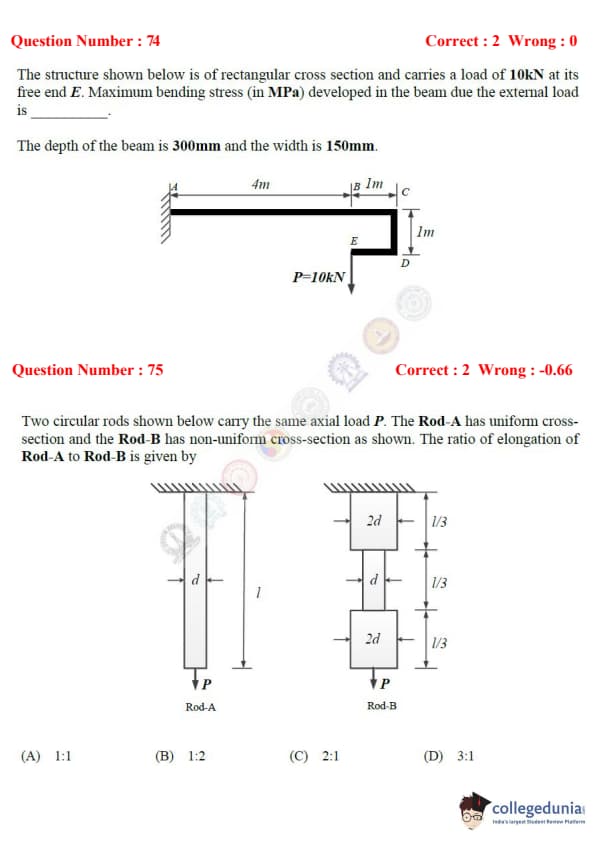 - There will be two-third negative marking for the wrong answers in two marks MCQs.