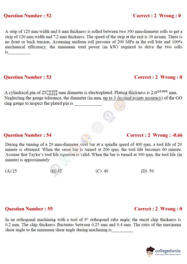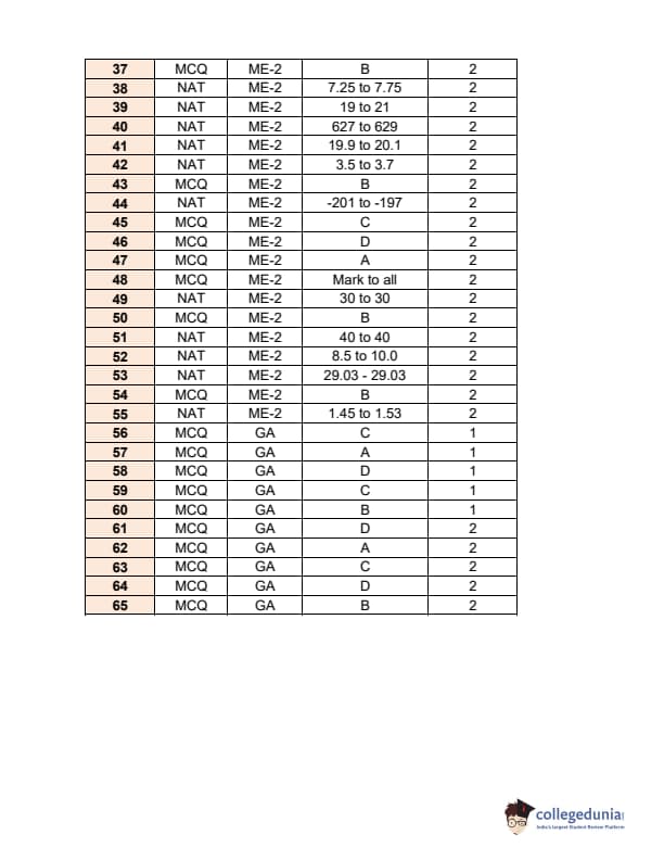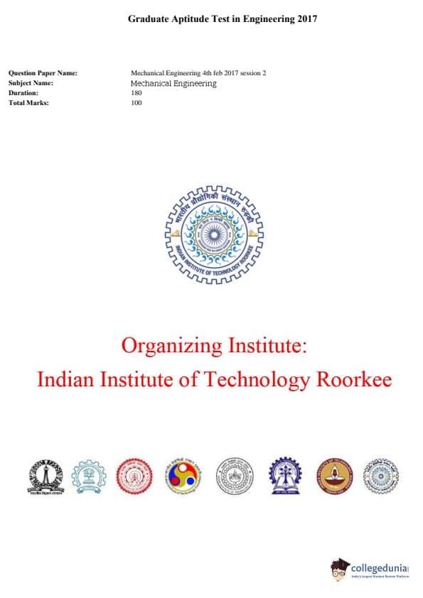 GATE 2017 Mechanical Engineering (ME) Question Papers with Answer Key PDFs (February 4- Afternoon Session) is now available for download. IIT Roorkee conducted GATE 2017, ME Paper, on February 4 in Afternoon Session of Slot 2. The difficulty level of GATE 2017 ME Paper was moderate. There was a total of 65 questions for 100 Marks.