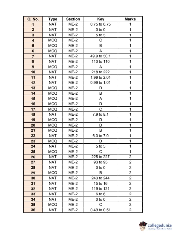 | GATE 2017 Mechanical Engineering (ME) Question Paper | GATE 2017 Mechanical Engineering (ME) Answer Key |