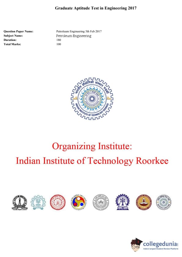GATE 2017 Petroleum Engineering (PE) Question Paper and Answer Key PDFs are now available to download in the details. In 2017, IIT Roorkee took the responsibility for conducting GATE 2017. The test-takers described the difficulty level as between moderate and difficult. GATE 2017 Petroleum Engineering (PE) was held on February 5, 2017 in the Afternoon Session. The question paper had 65 questions out of which 10 questions were from general aptitude and 55 questions were from the core section.