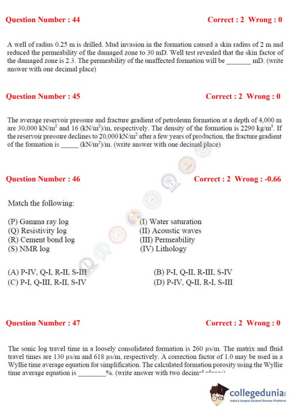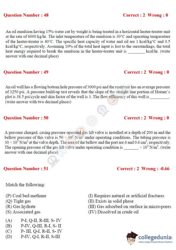 GATE 2017 Petroleum Engineering (PE) Question Paper with Answer Key PDFs (February 5 - Afternoon Session)