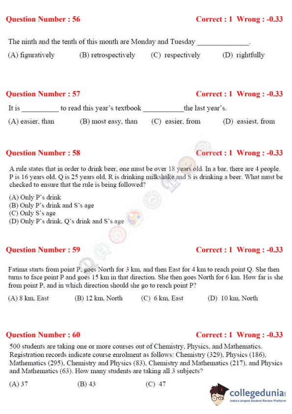 - In Multiple Choice Questions (MCQs), there will be one-third negative marking for the wrong answer in one mark MCQs.
