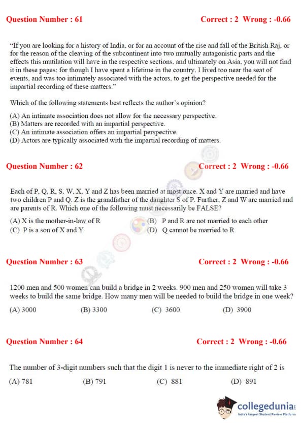 - There will be two-third negative marking for the wrong answers in two marks MCQs.