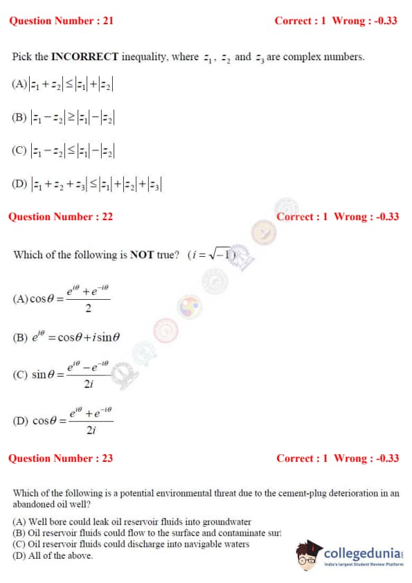 - In Numerical Answer Types (NATs), there will be no negative marking for the wrong answers.