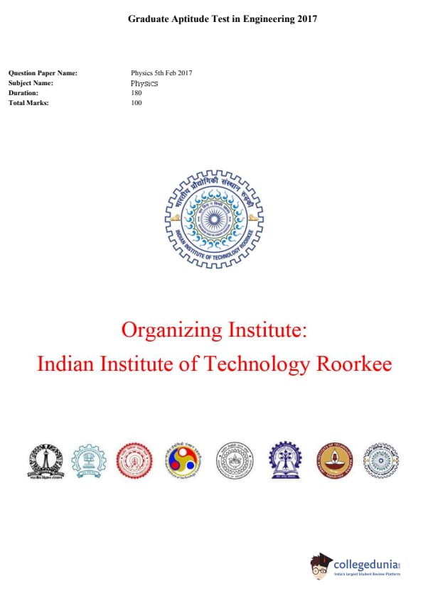 GATE 2017 Physics (PH) Question Papers with Answer Key PDFs (February 5-Afternoon Session) is now available for download. GATE 2017 PH was conducted by IIT Roorkee. GATE 2017 PH had a moderate difficulty level. The paper was conducted for a total of 100 marks with a total of 65 questions.