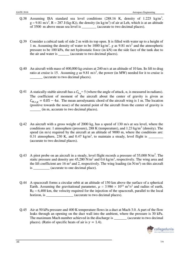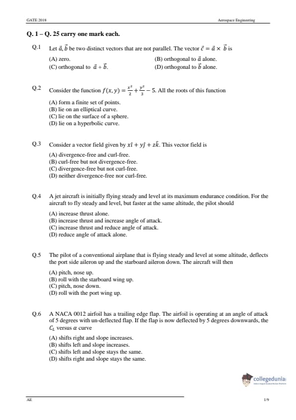 GATE 2018 Aerospace Engineering Paper Analysis
