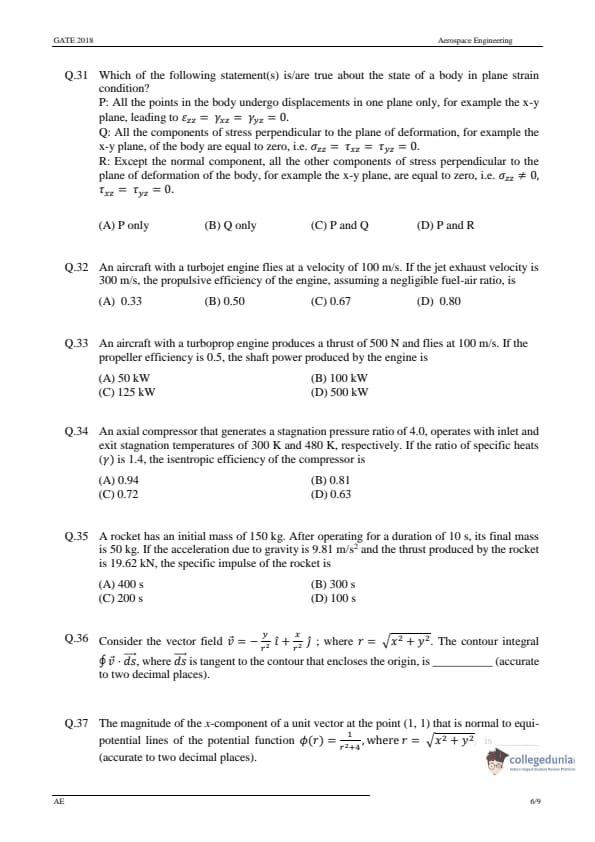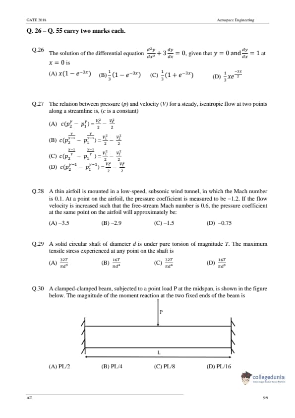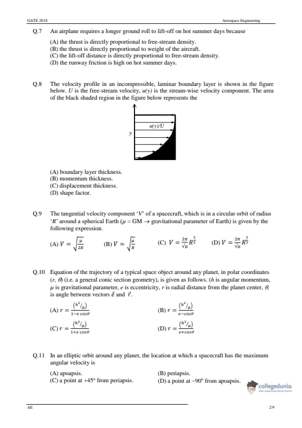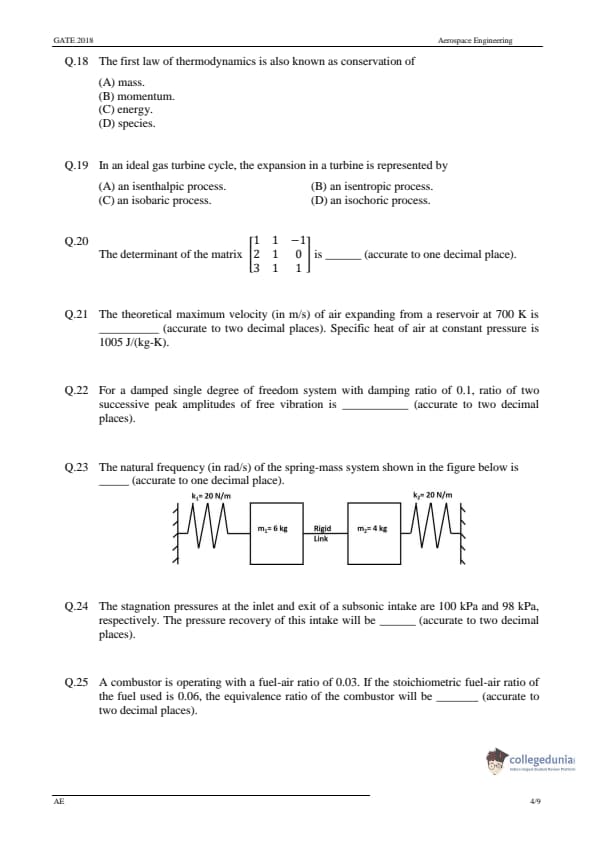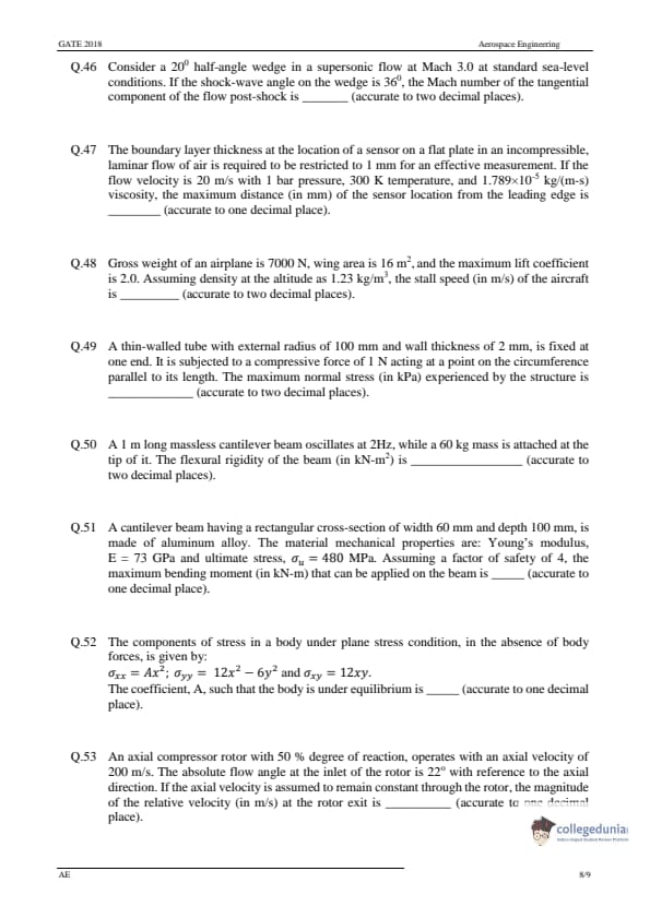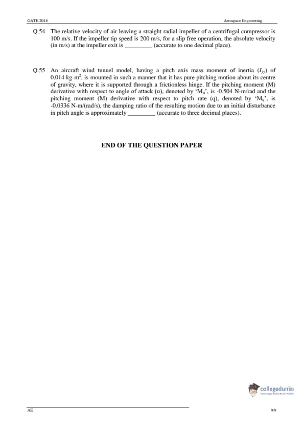 GATE 2018 Aerospace Engineering (AE) Question Paper with Answer Key PDF-Feb 3(Afternoon Session)