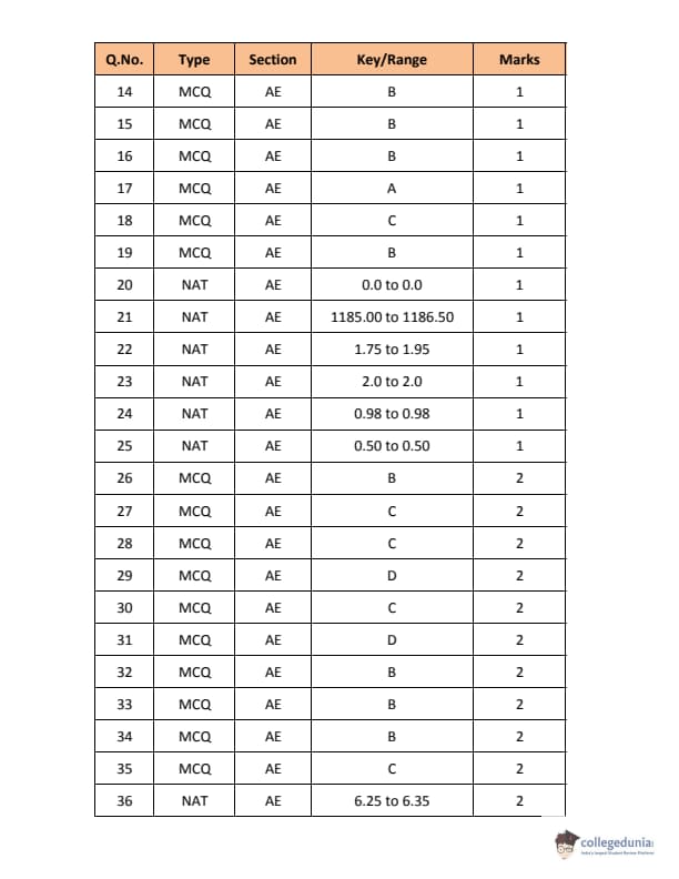 - There were 25 NAT (Numerical Answer Type) questions in GATE 2018 AE. Rest of the 40 questions were MCQs (Multiple Choice Questions).