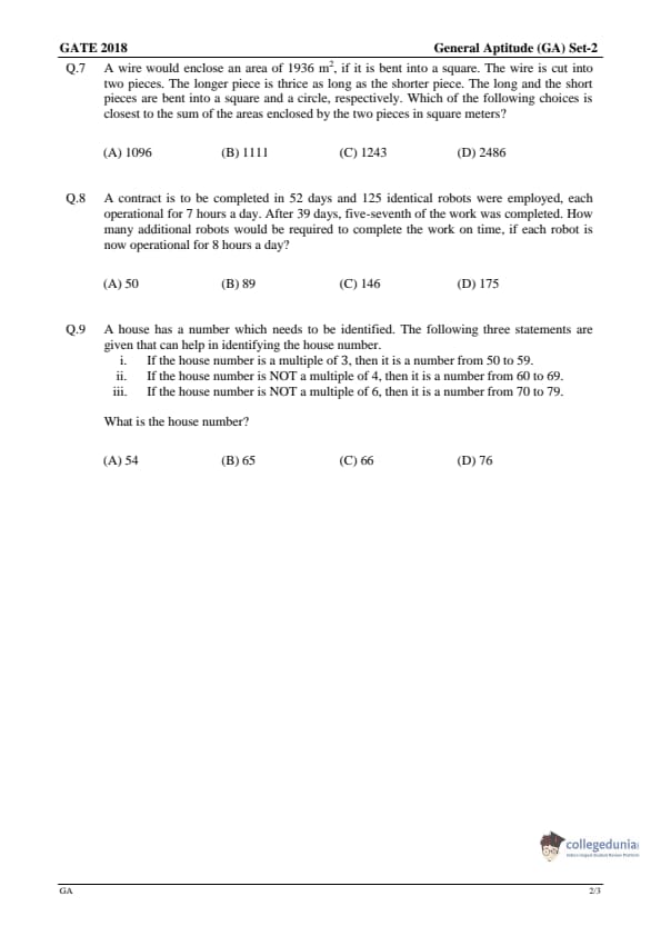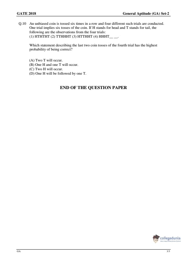 | GATE 2018 Question Paper | GATE 2018 Answer key |
