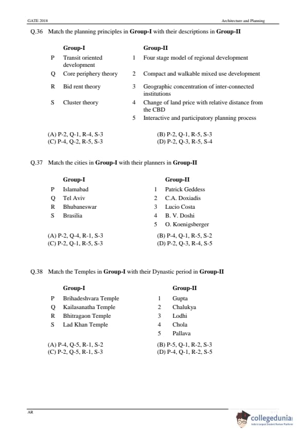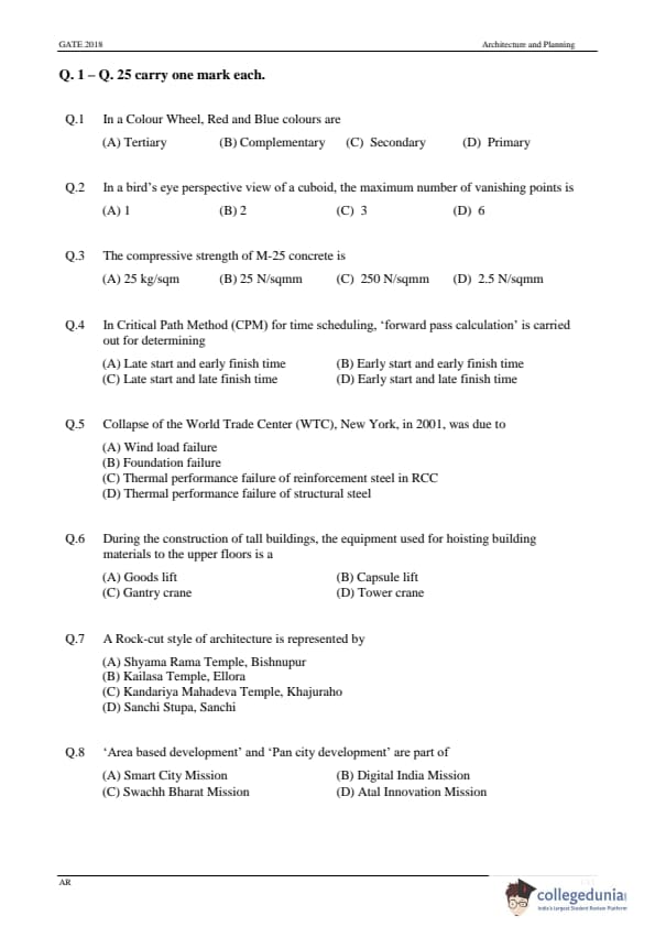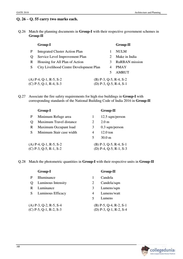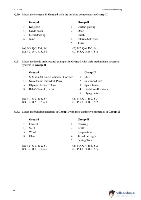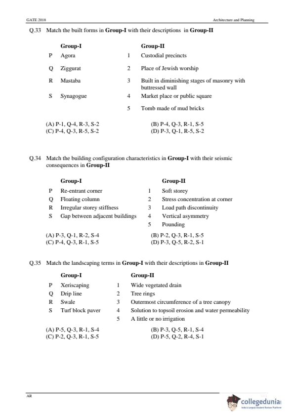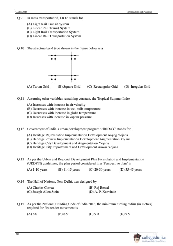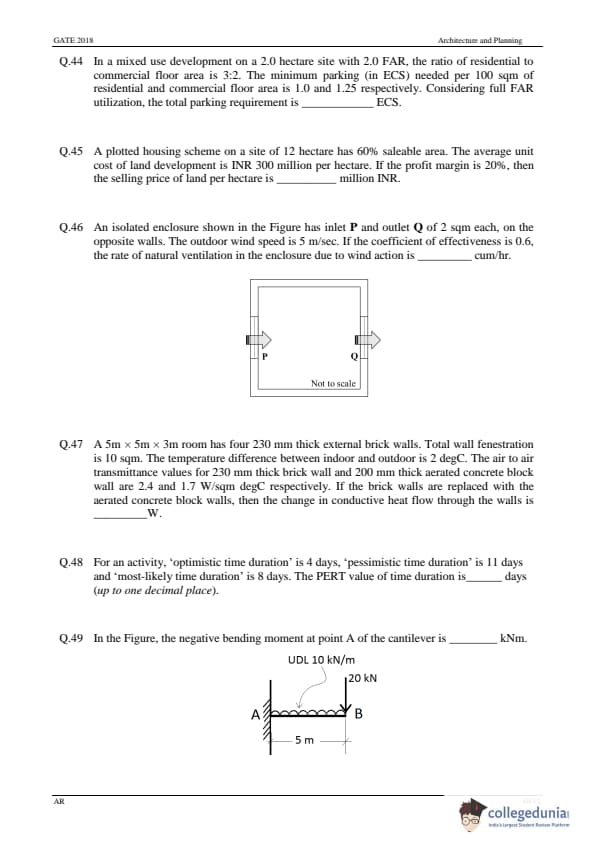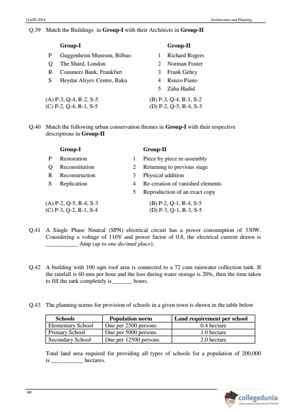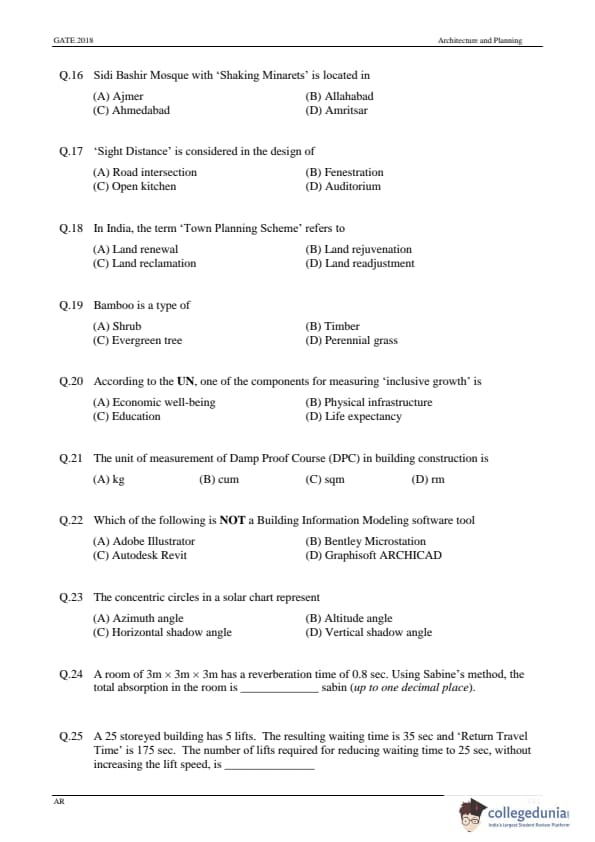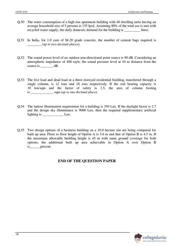 GATE 2018 Architecture and Planning (AR) Question Paper with Answer Key PDF-February 04(Afternoon Session)