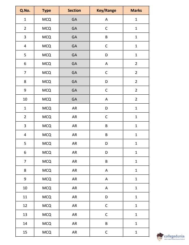 - 10 MCQs questions appeared from the General Aptitude section, carrying 15 marks.