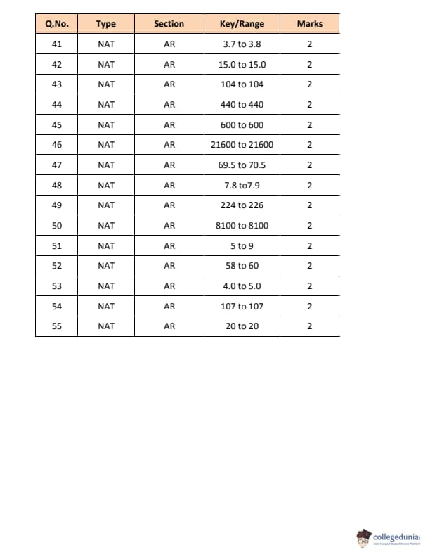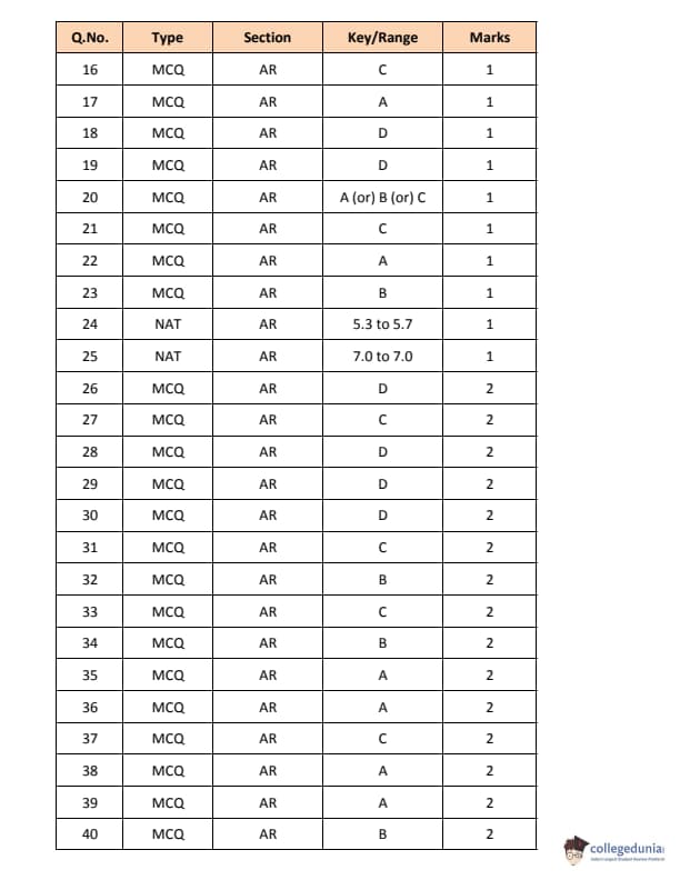 - There were 17 NAT (Numerical Answer Type) questions in GATE 2018 AR. Rest of the 48 questions were MCQs (Multiple Choice Questions).