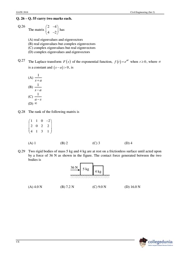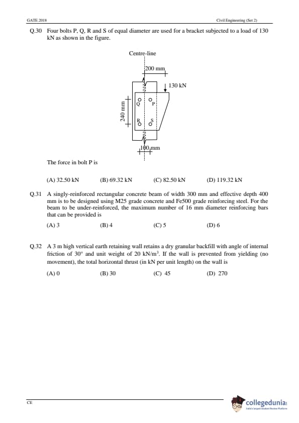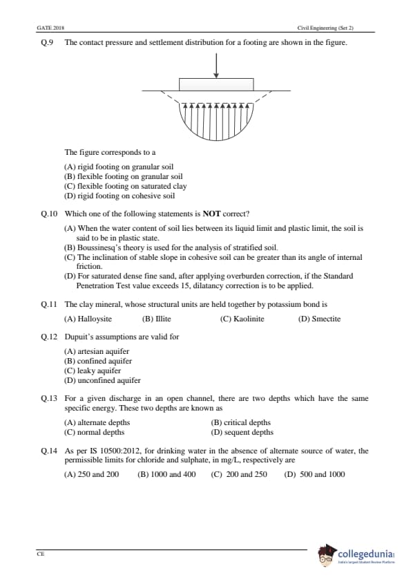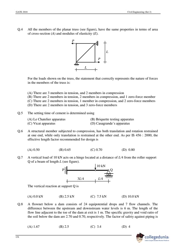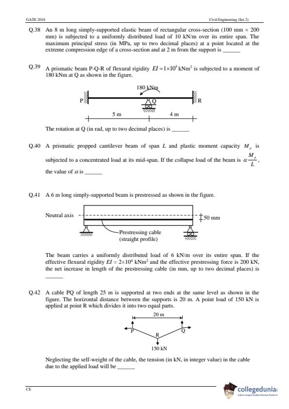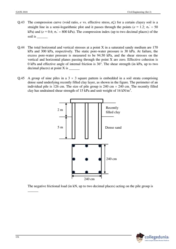 GATE 2018 CE Question Paper with Answer Key PDFs Slot 2- Feb 11, 2018 (Forenoon Session)