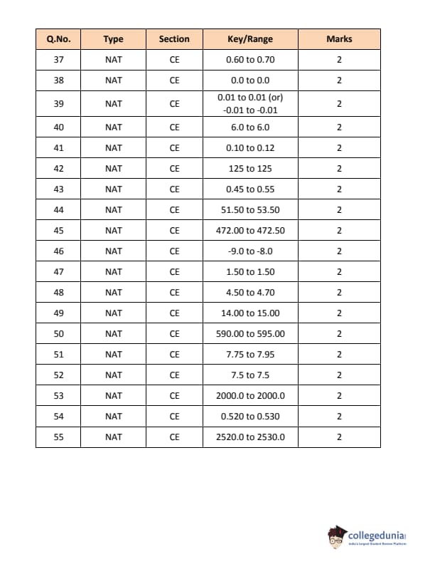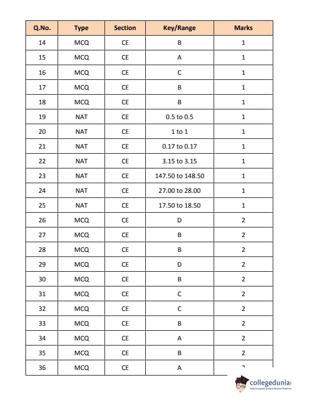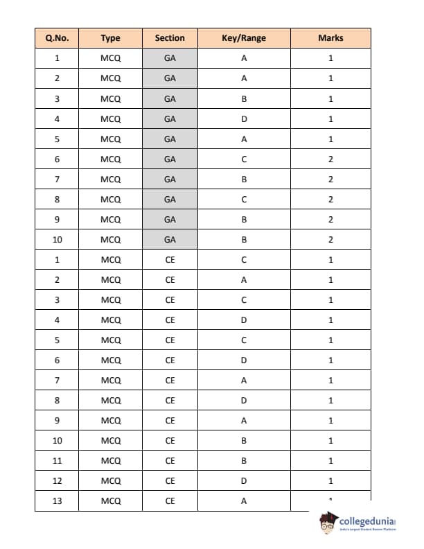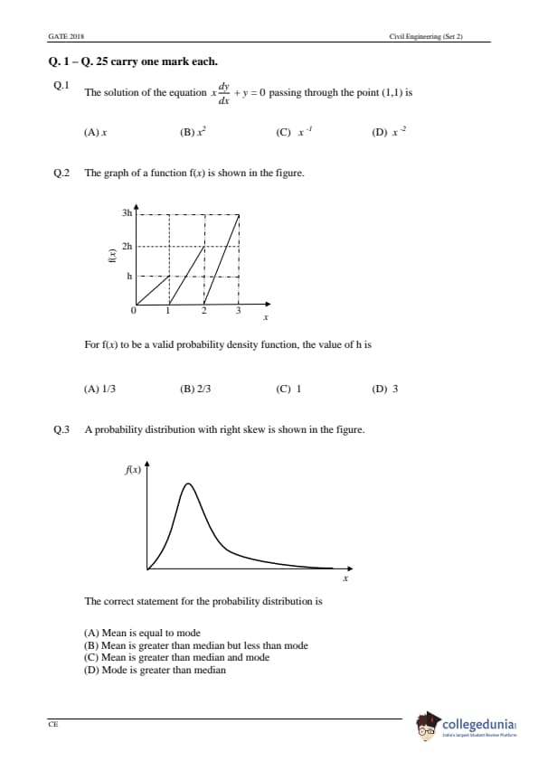 - Candidates can check the 1 mark and 2 marks questions in GATE 2018 CE Question Paper from the table below-