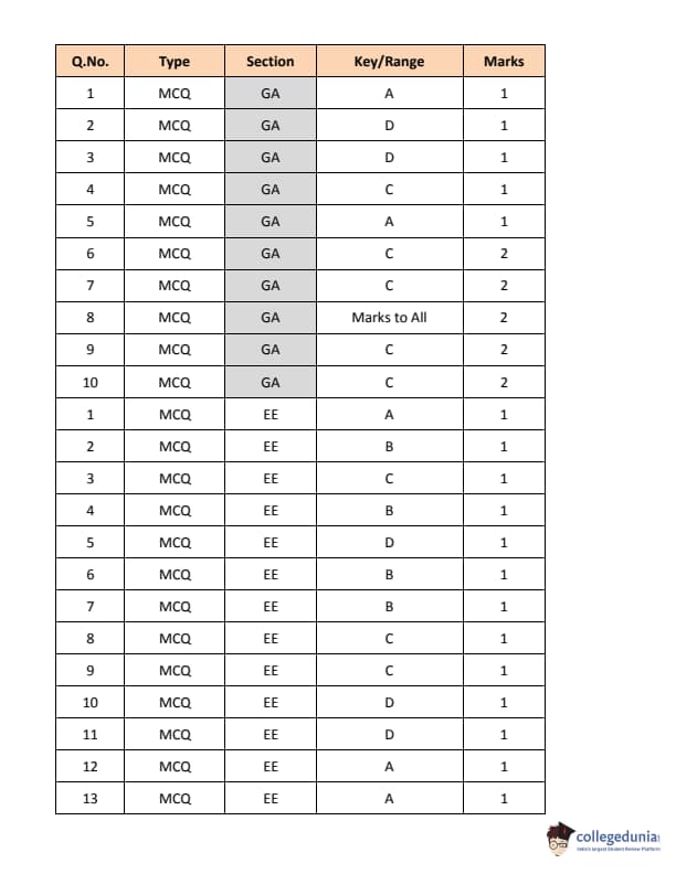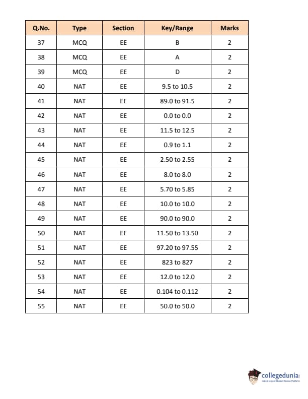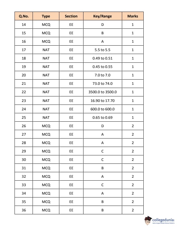 GATE 2018 EE Answer Key Details