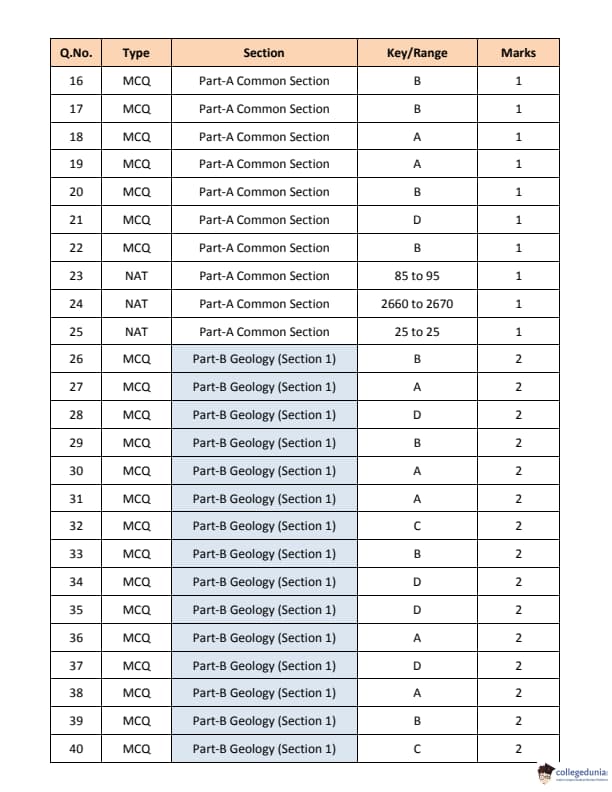 | General Aptitude + Section 1 (Compulsory Sections) | Section B- Geology | Section B- Geophysics | |