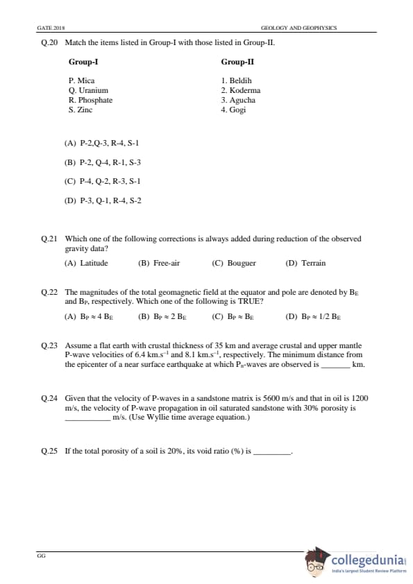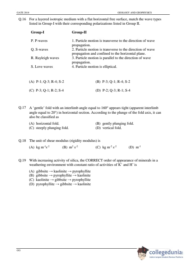 | GATE 2018 GG Question Paper | GATE 2018 GG Answer Key |