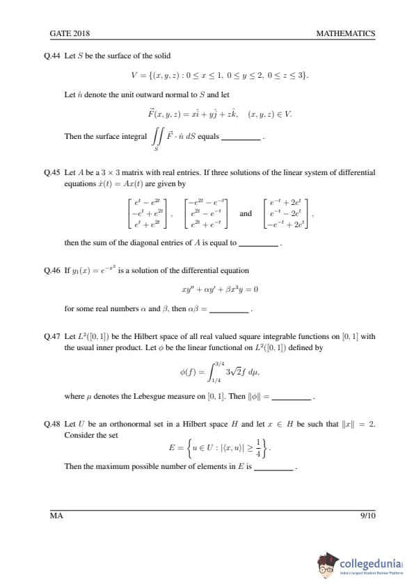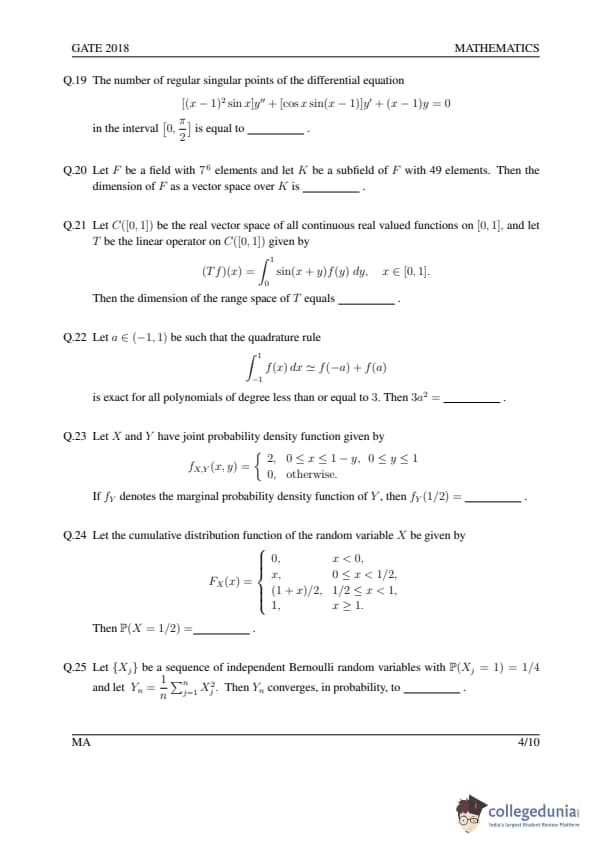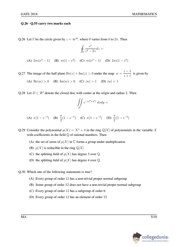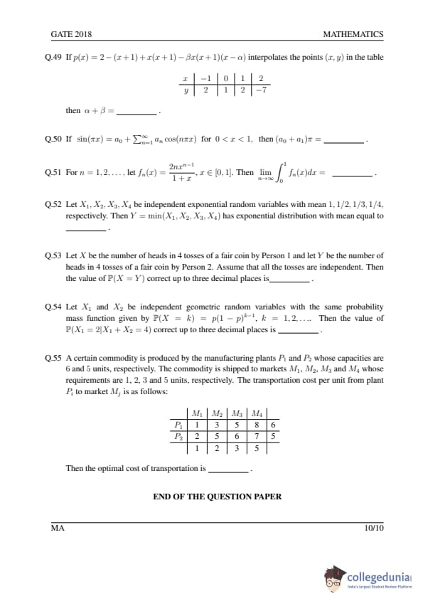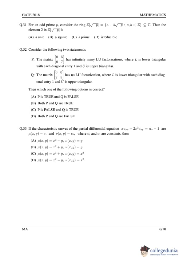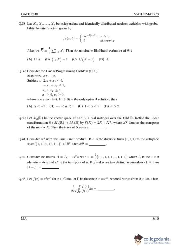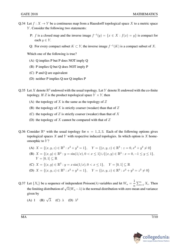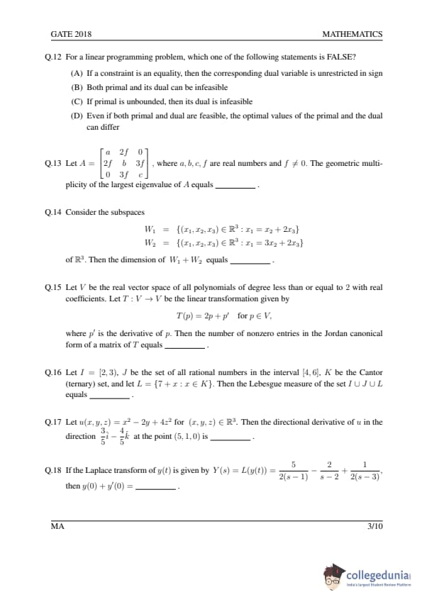 GATE 2018 MA Question Paper with Answer Key PDFs- February 3 (Afternoon Session)