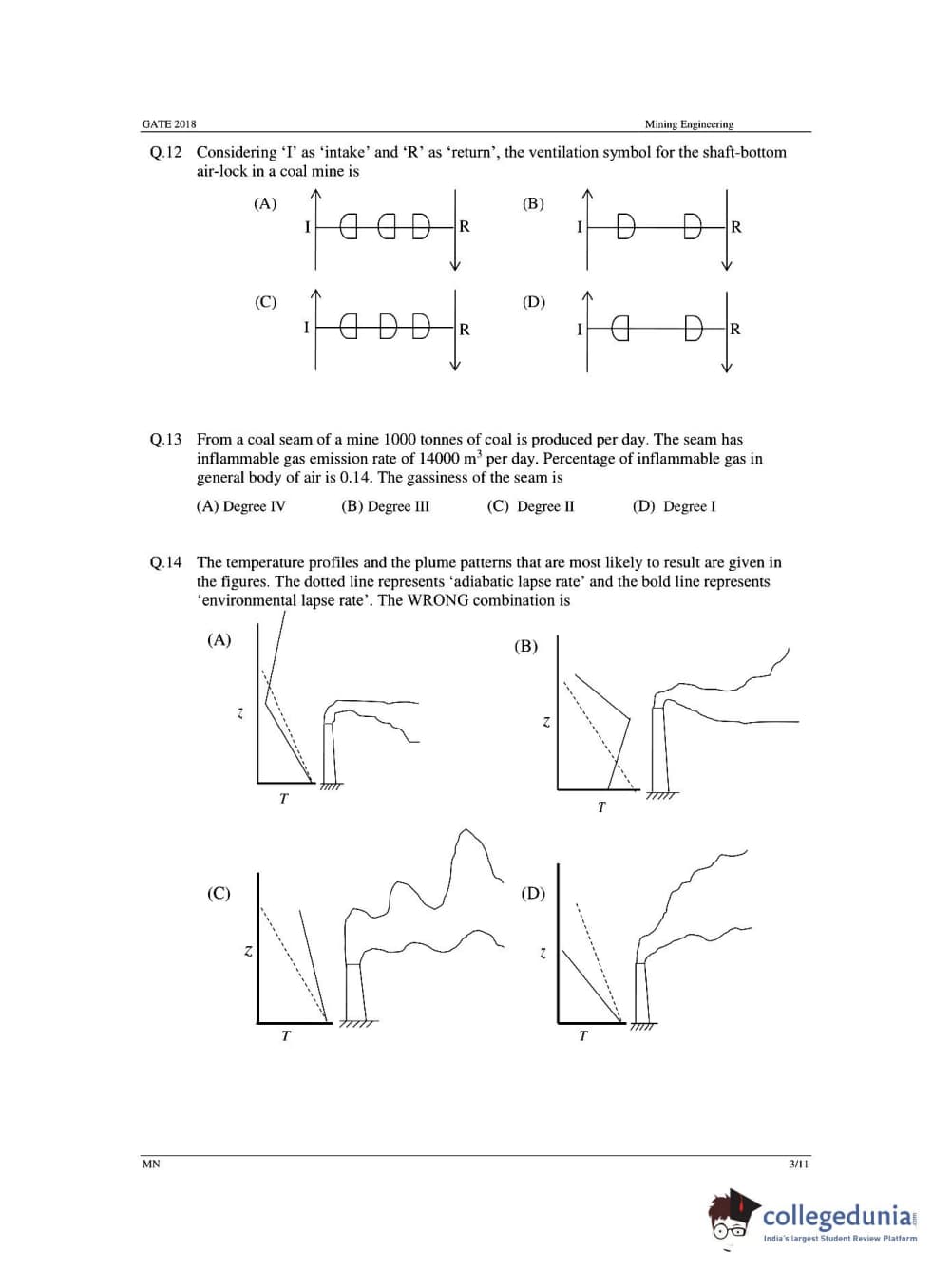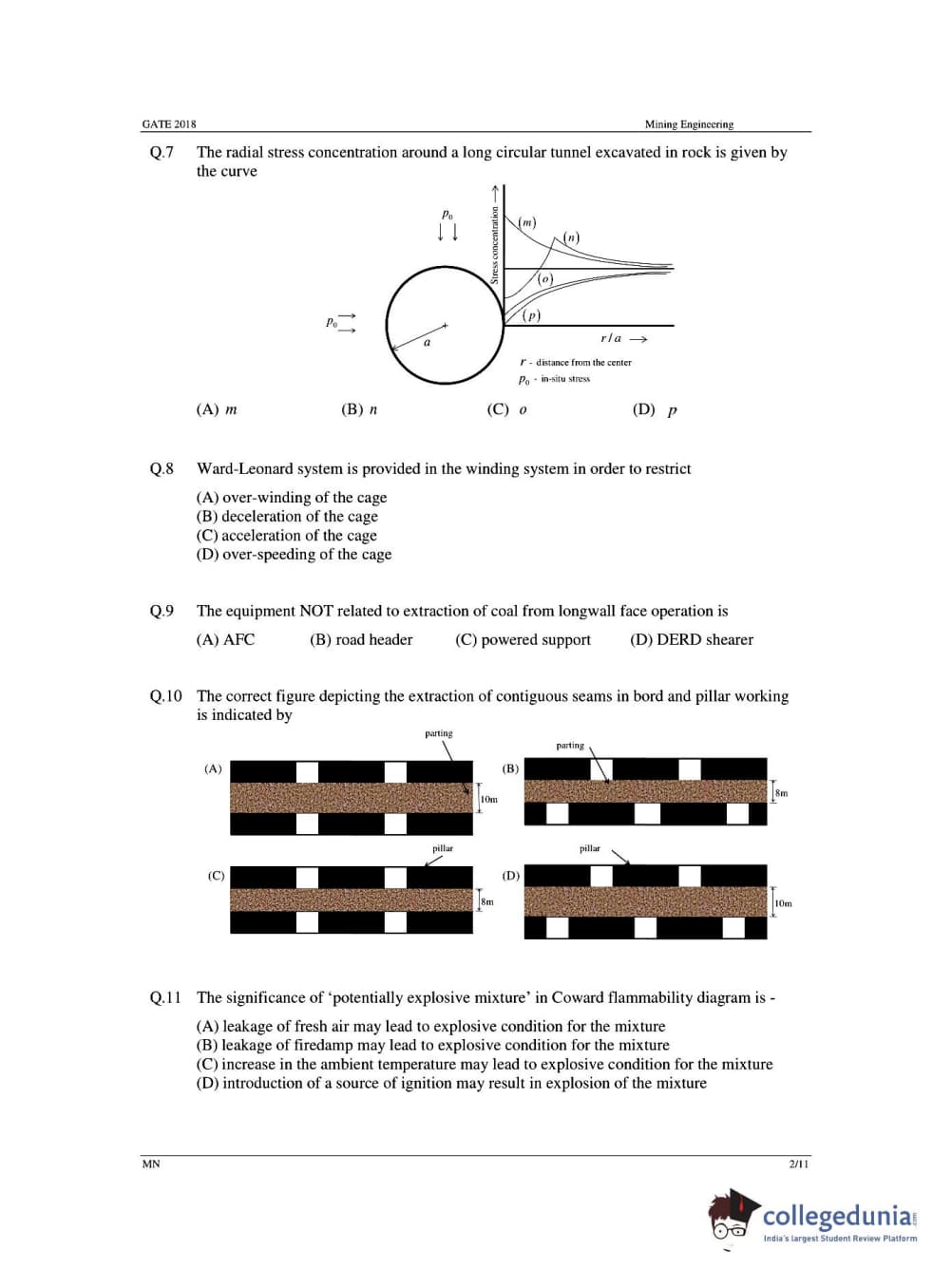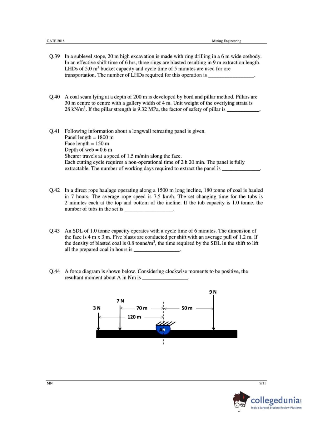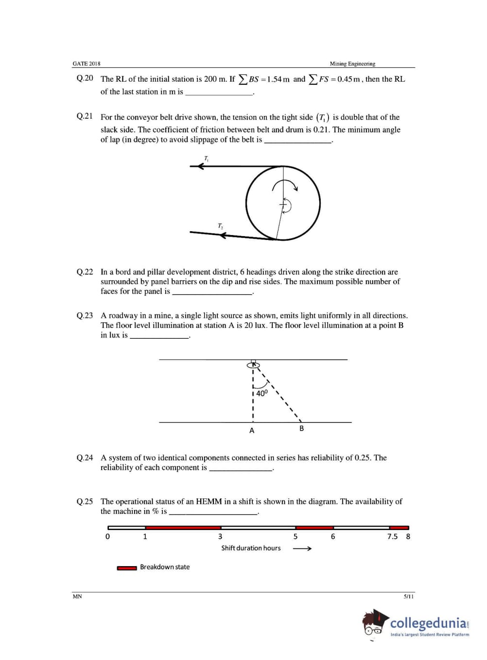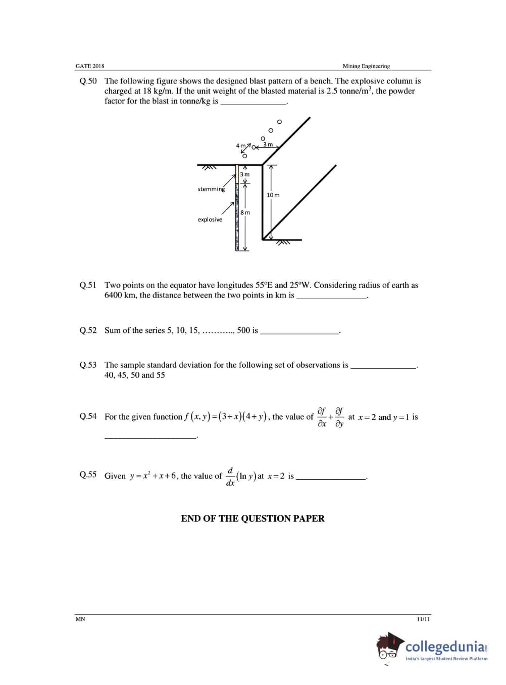 GATE 2018 Mining Engineering (MN) Question Paper with Answer Key PDFs (February 4 - Forenoon Session)