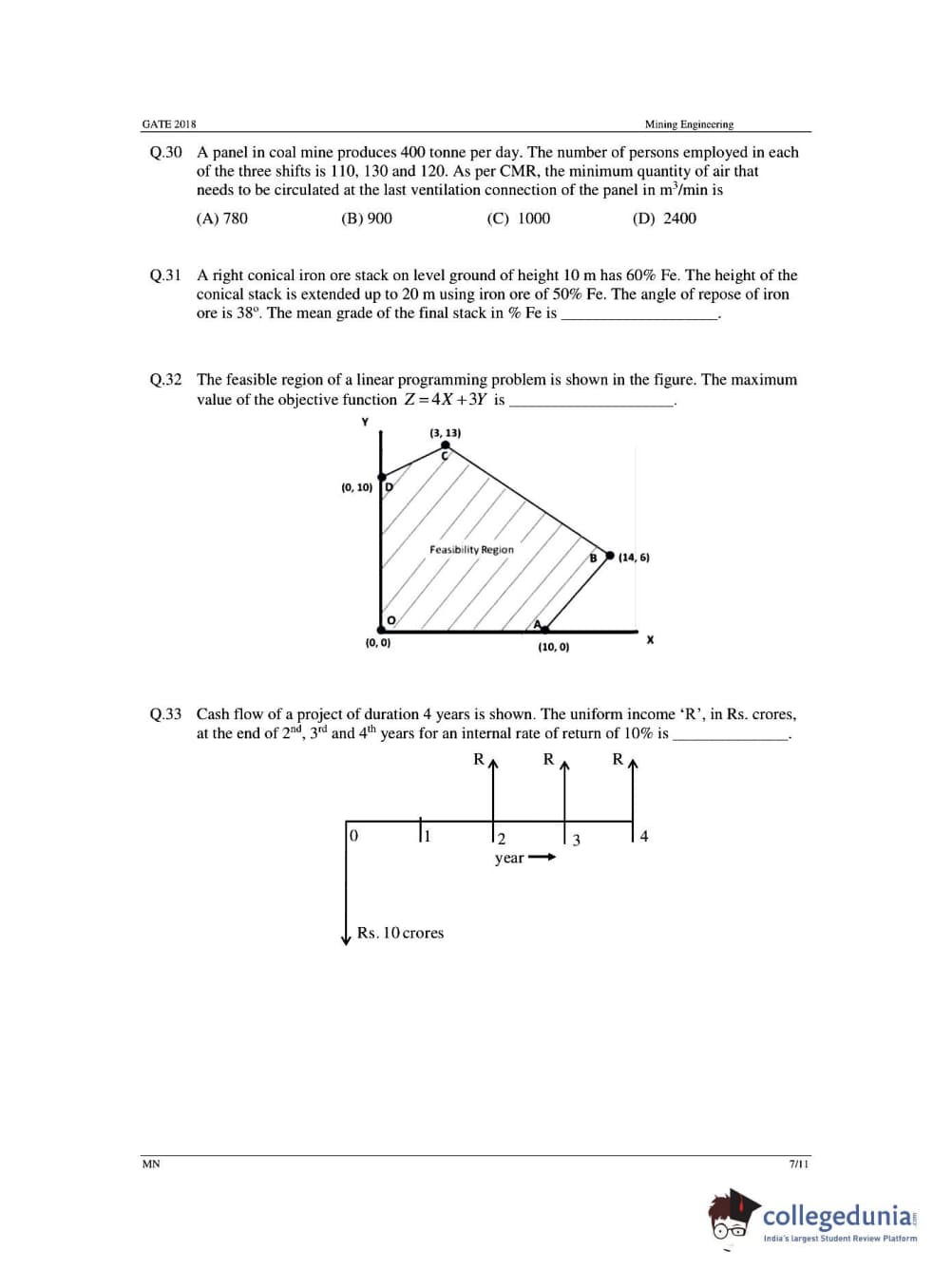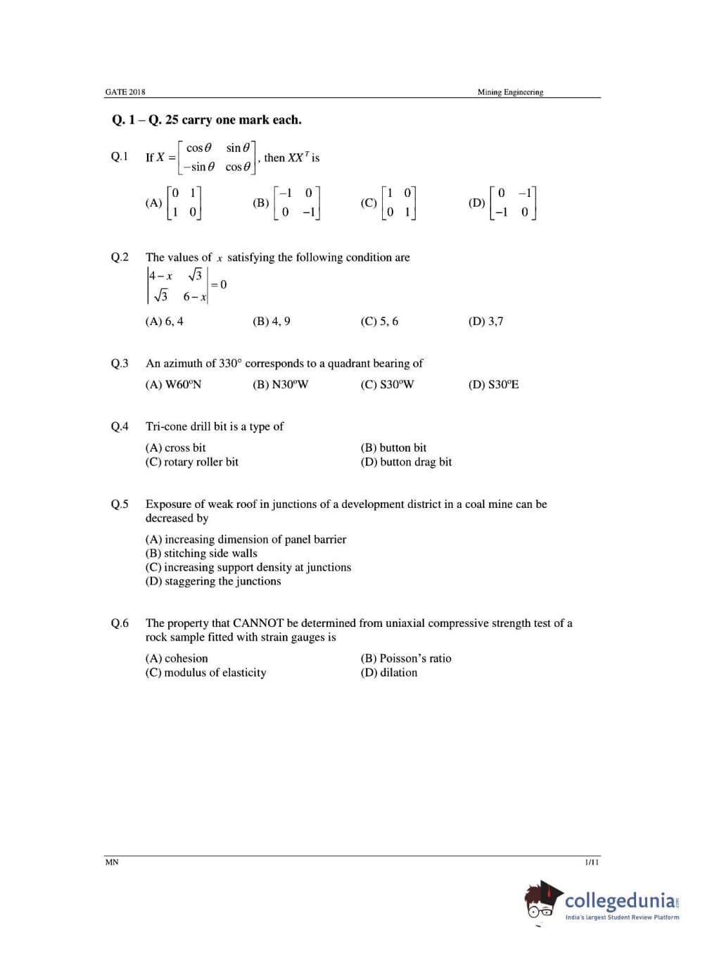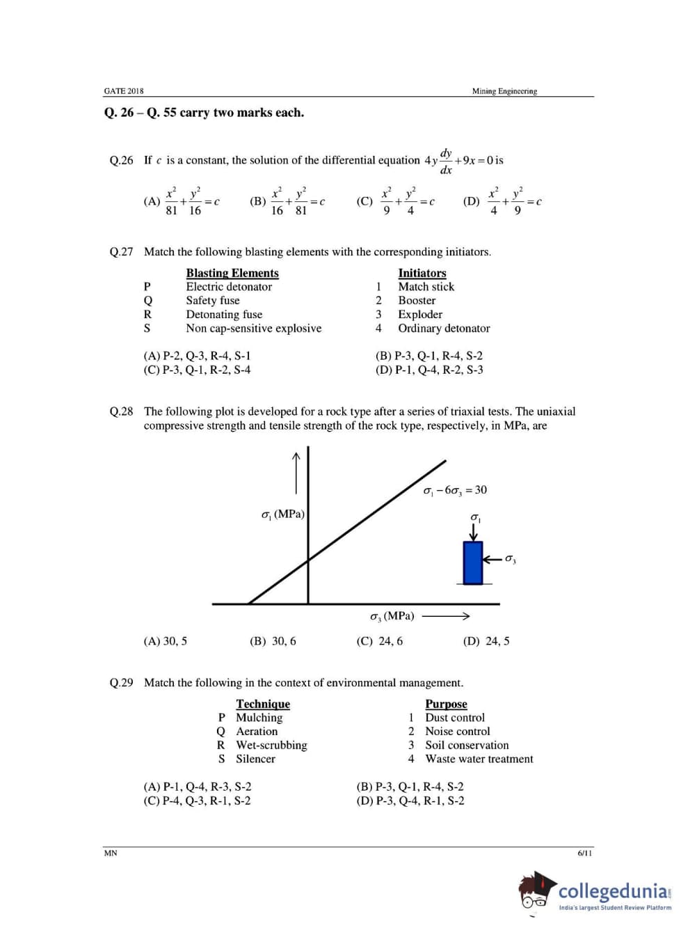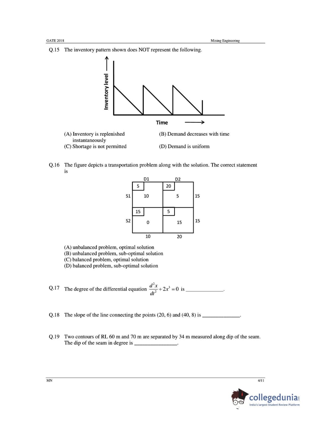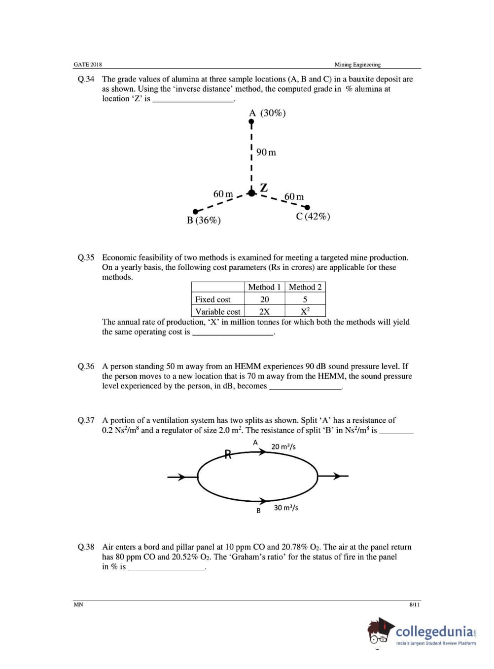 GATE 2018 Mining Engineering (MN) Question Paper with Answer Key PDFs (February 4 - Forenoon Session)