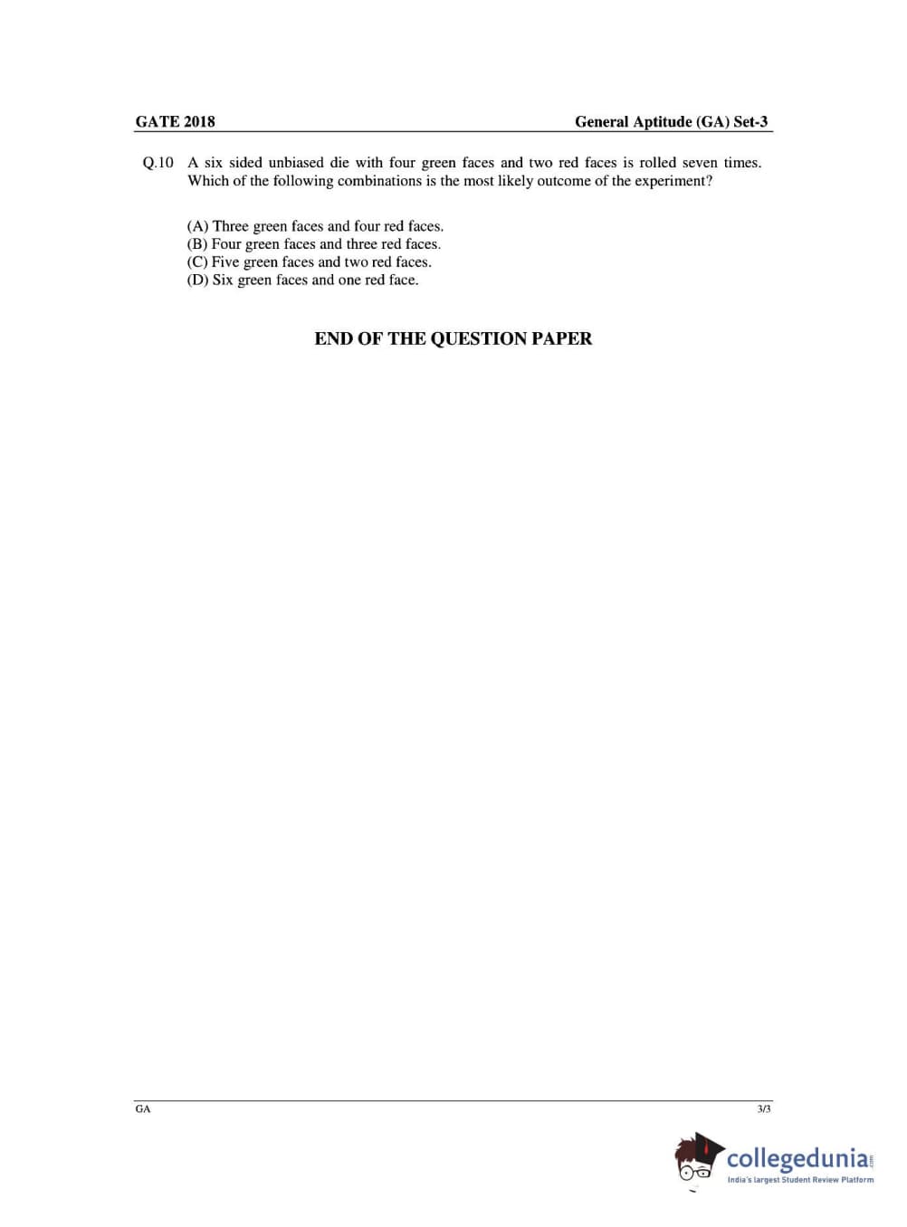 GATE 2018 MN Question Paper with answer key PDF is available for download. The exam was successfully conducted by IIT Guwahati on February 04, 2018 in the forenoon session. The difficulty level of the GATE 2018 MN Question Paper was rated as moderate. There were 31 MCQs and 34 NATs in GATE 2018 MN Question Paper.