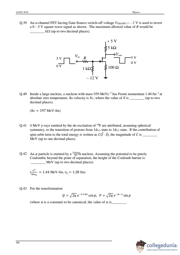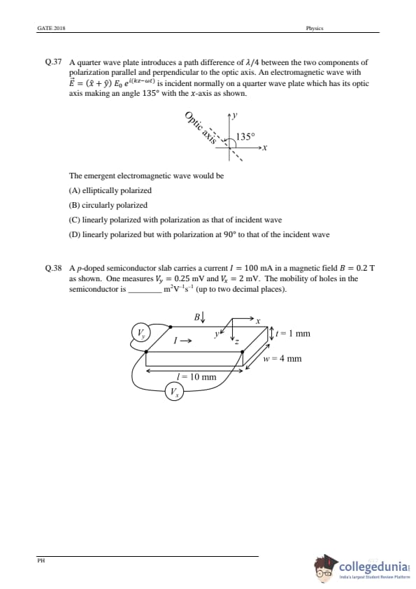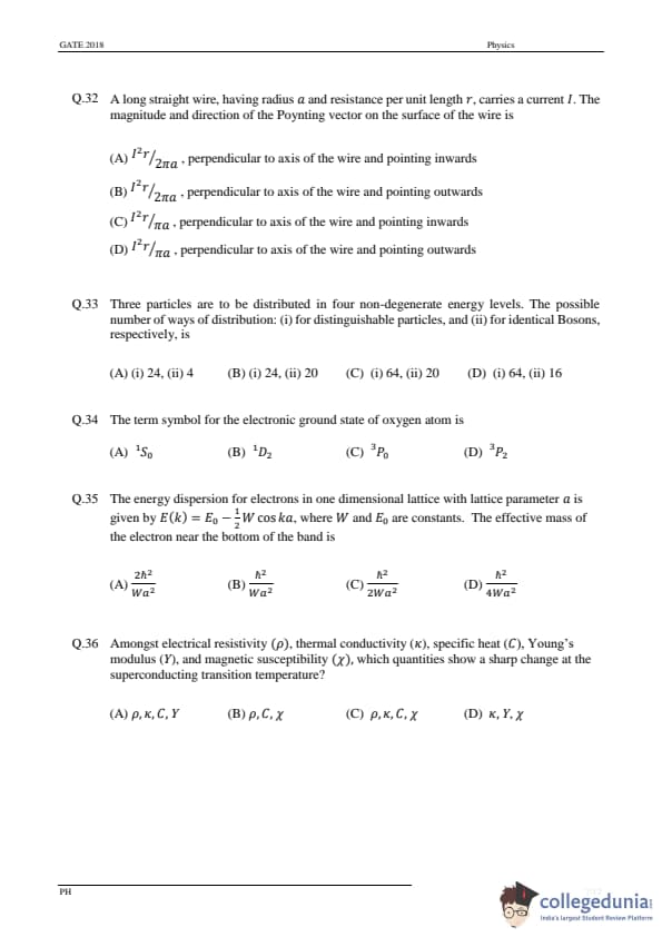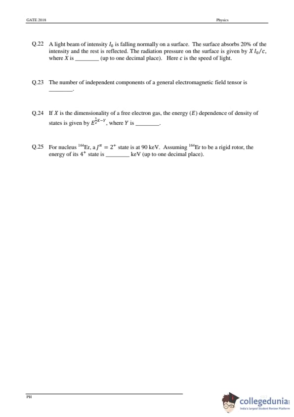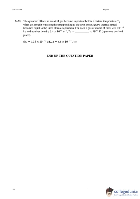 GATE 2018 Physics (PH) Question Paper with Answer Key is available for download. GATE 2018 PH paper was conducted on February 4, 2018 in the Forenoon Session. IIT Guwahati conducted the examination successfully. GATE 2018 PH Question Paper was reported as moderate in terms of the overall difficulty level of the paper.
