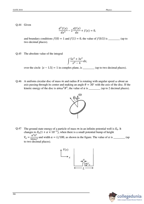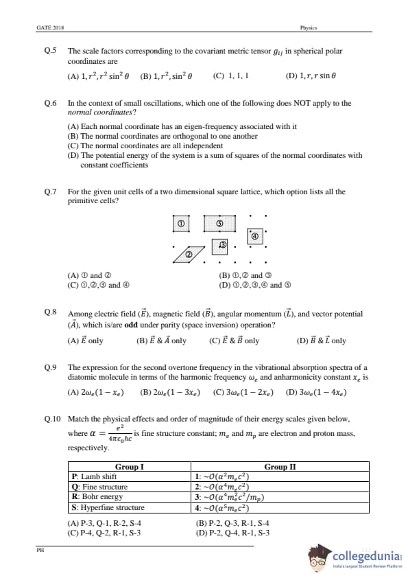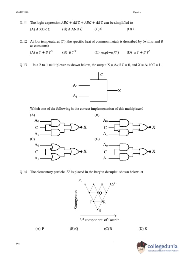 GATE 2018 PH Question Paper with Answer Key PDFs - February 4 (Forenoon Session)