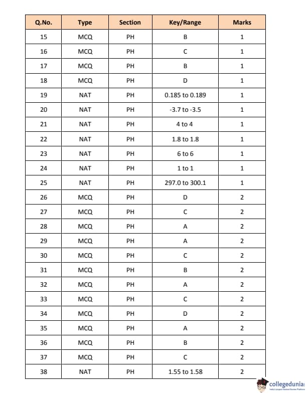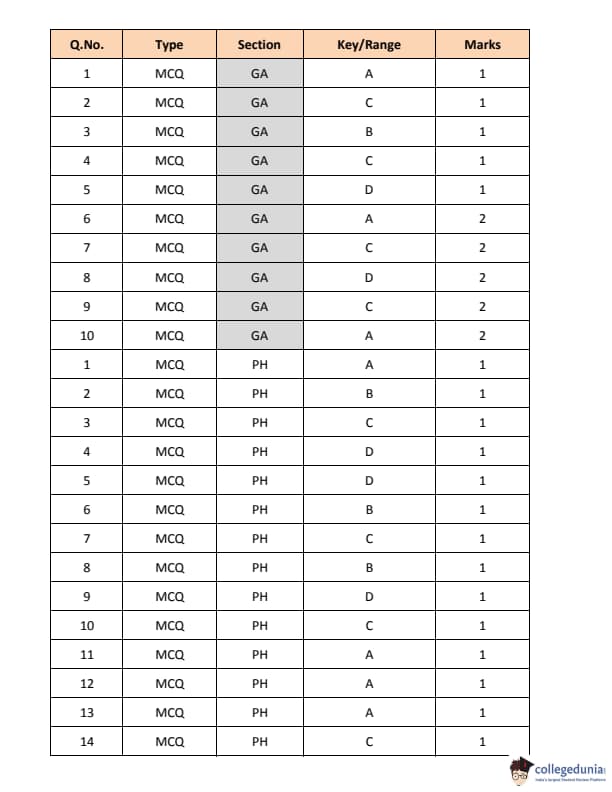 Candidates can check the number of questions- MCQs and NATs in GATE 2018 PH Question Paper from the table below-