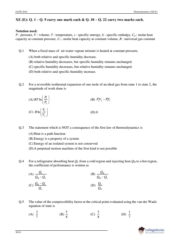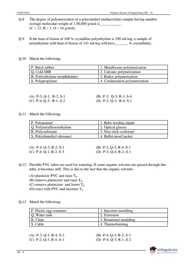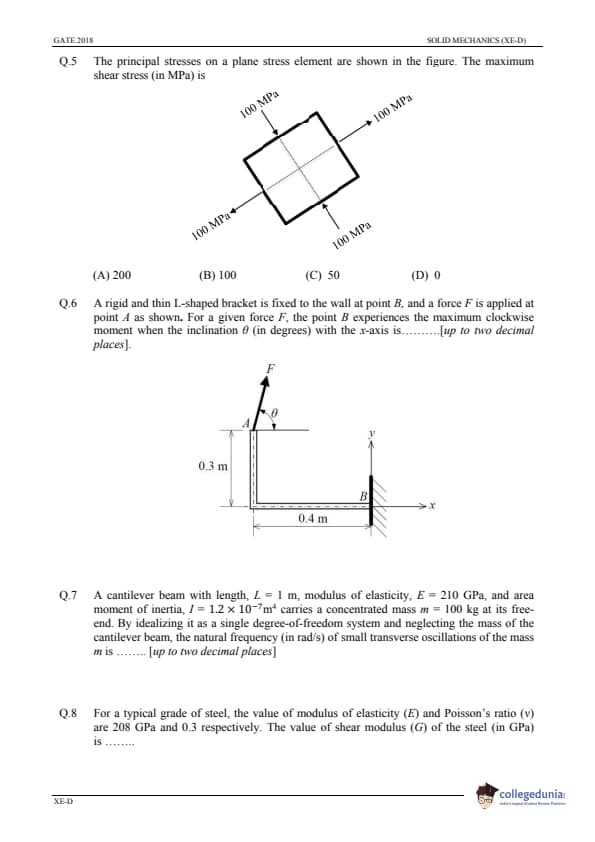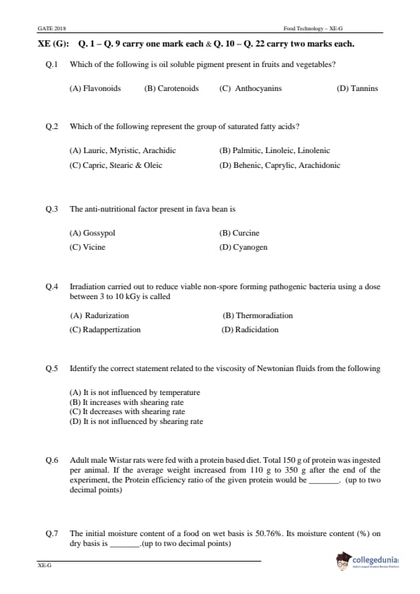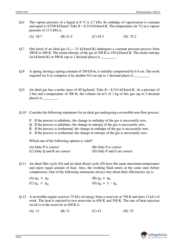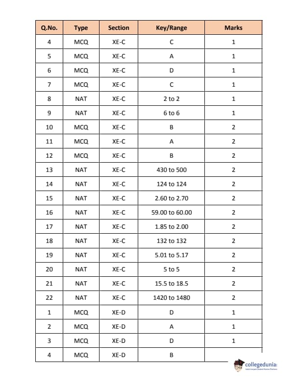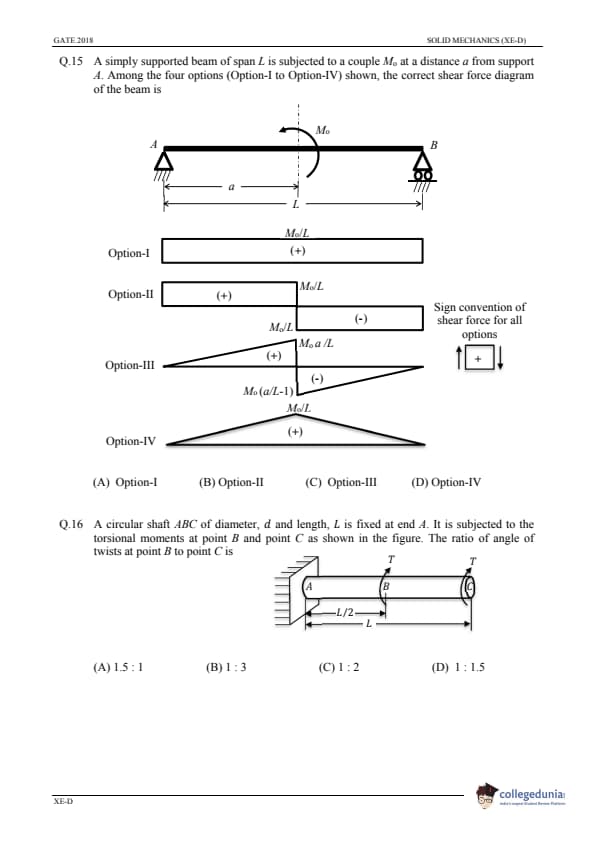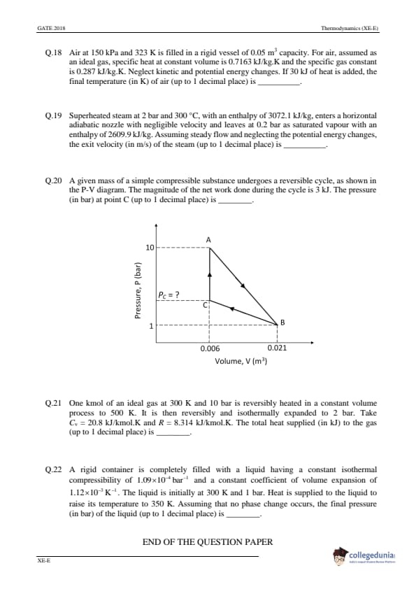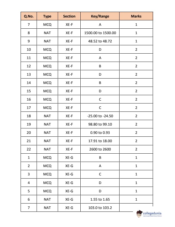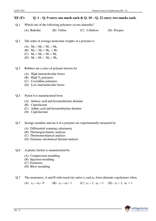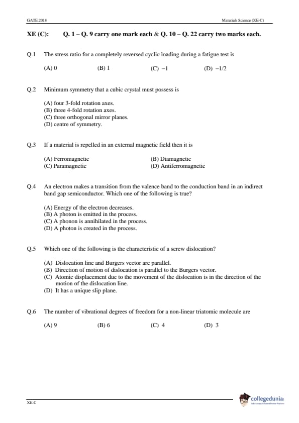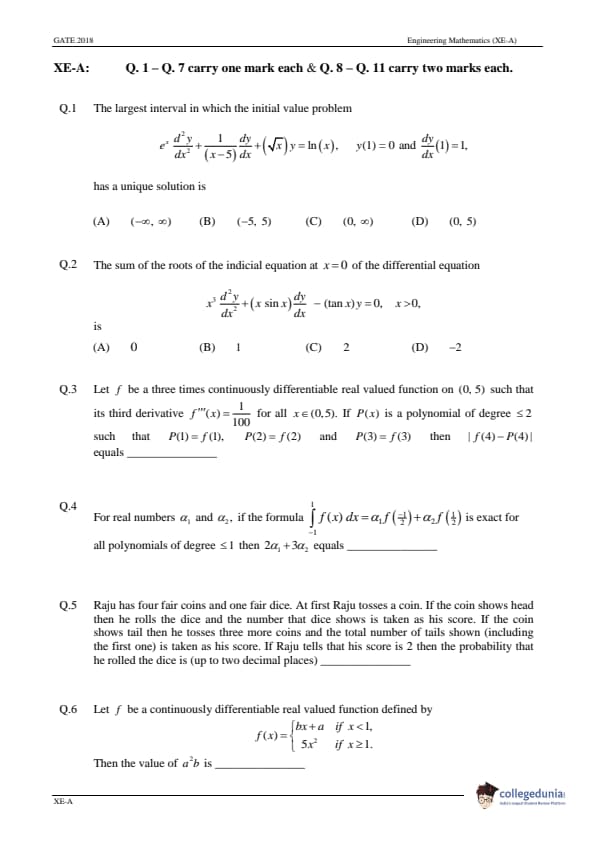 | GATE 2018 Engineering Science (XE) Question Paper PDF | GATE 2018 Engineering Science (XE) Answer Key PDF |