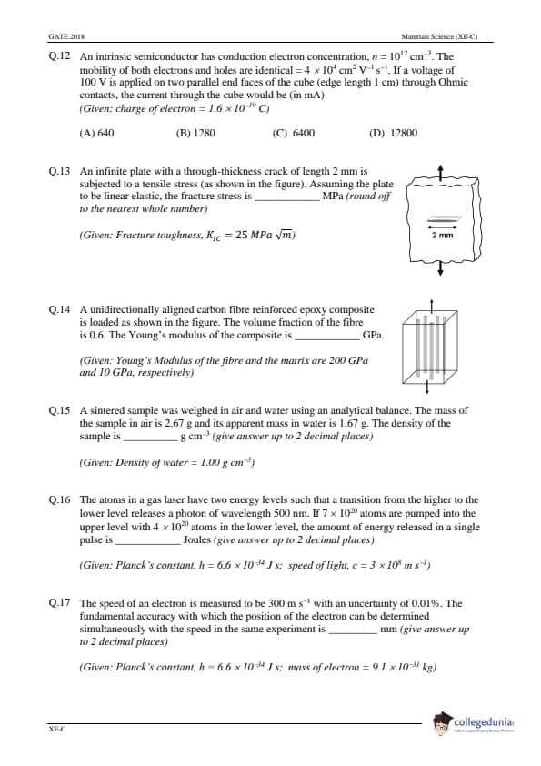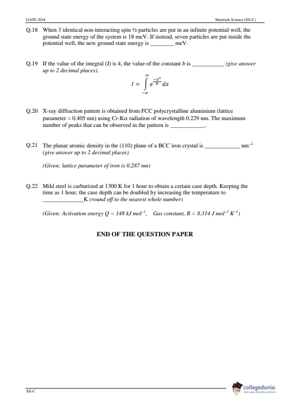 GATE 2018 Engineering Science (XE) Question Papers with Answer Key PDFs- (February 03)