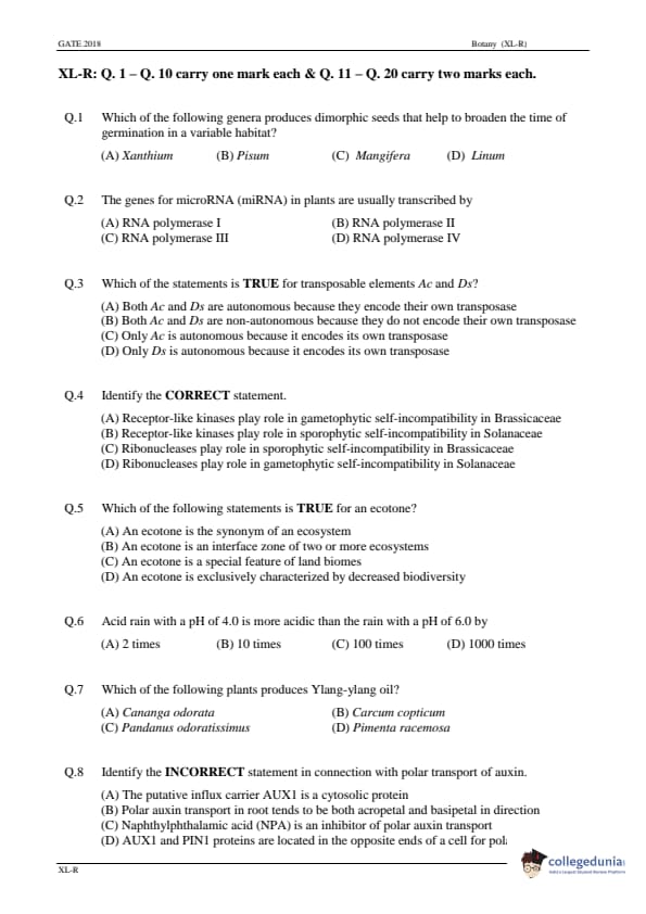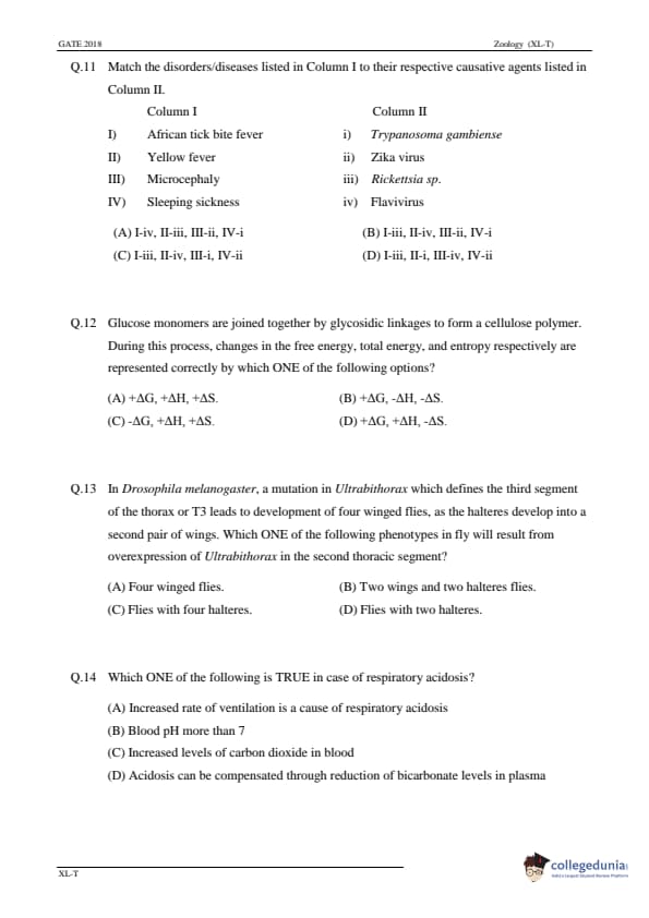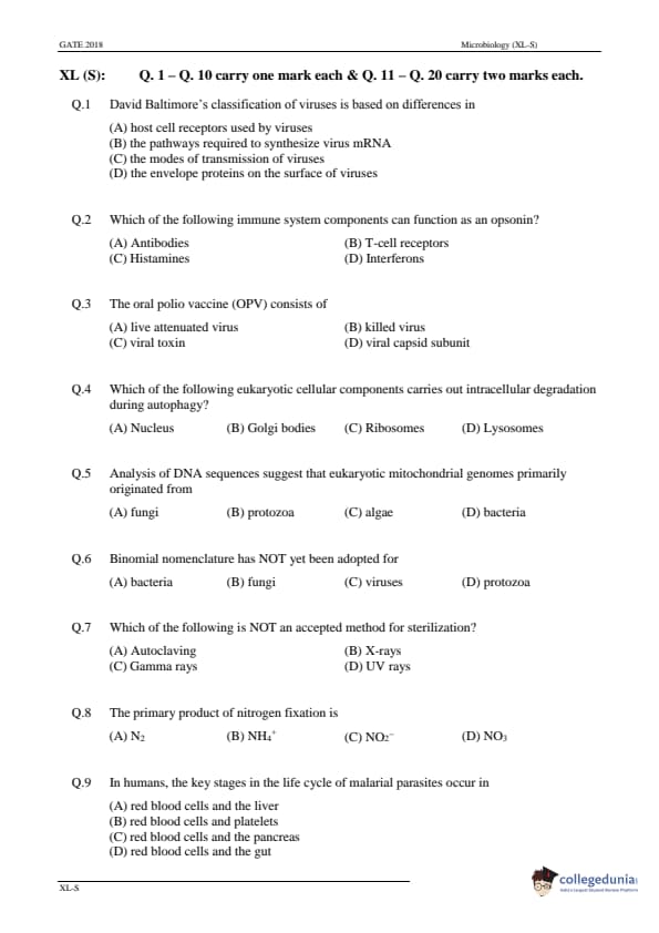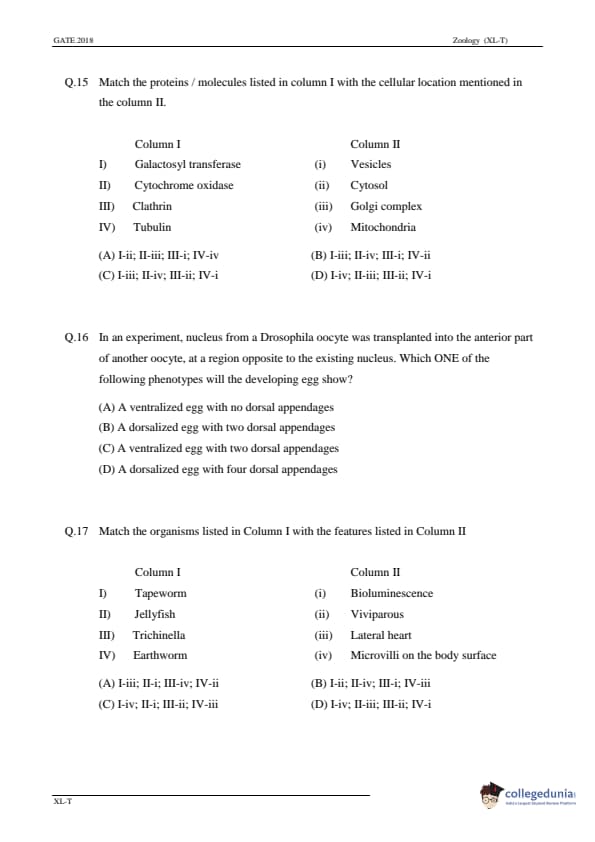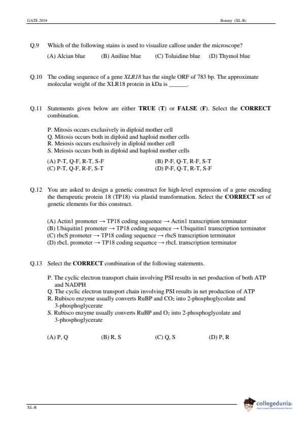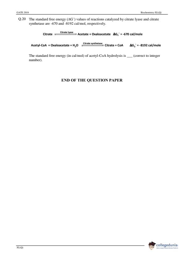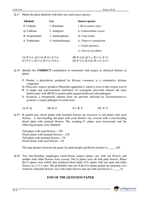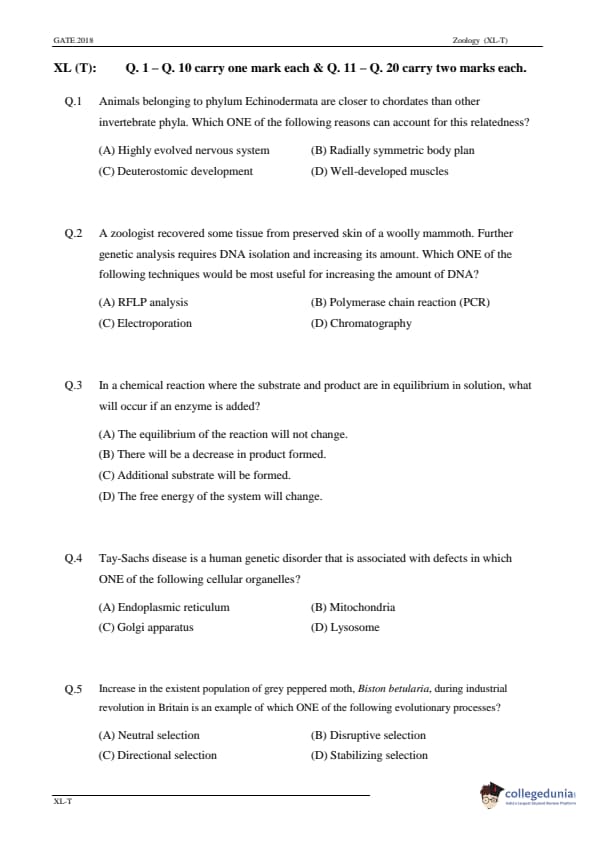 GATE 2018 Life Sciences (XL) Question Paper with Answer Key PDFs is available for download. GATE 2018 XL was conducted on 3rd February 2018 (Afternoon Session) by IIT Guwahati. GATE 2018 XL Question Paper had a moderate level of difficulty.