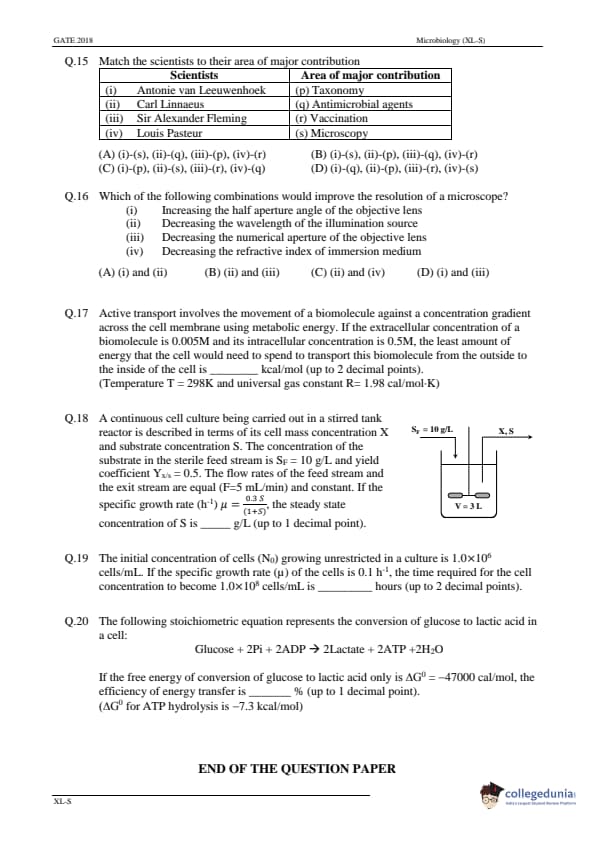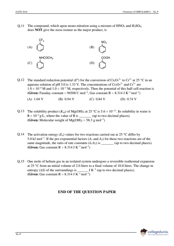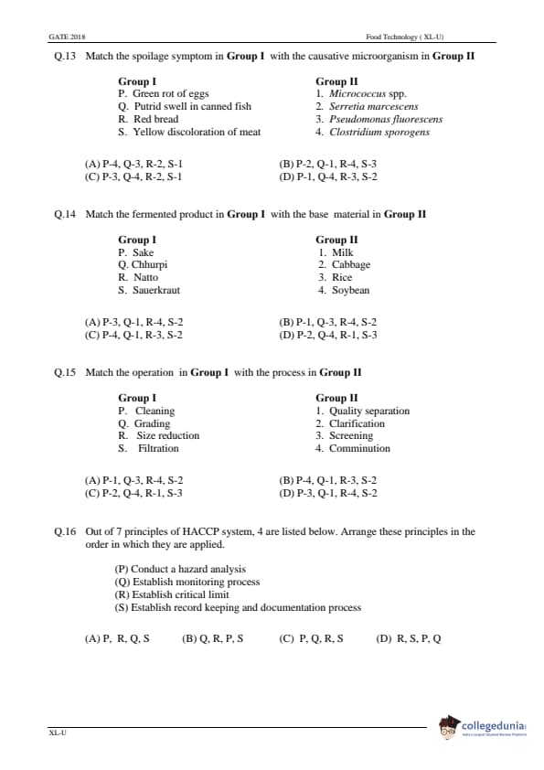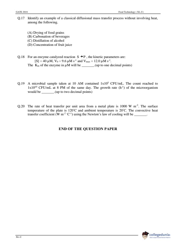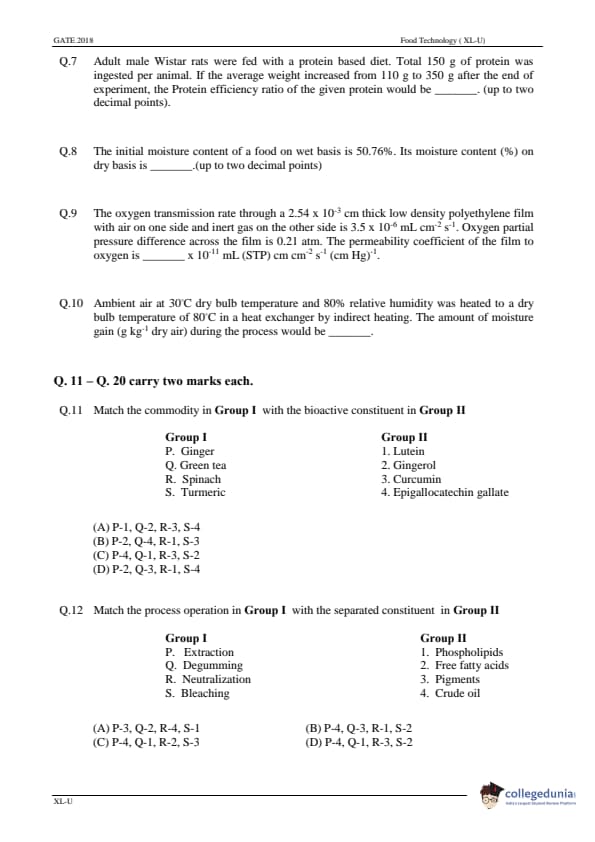 GATE 2018 XL Question Paper with Answer Key- Feb 03, 2018 (Afternoon Session)