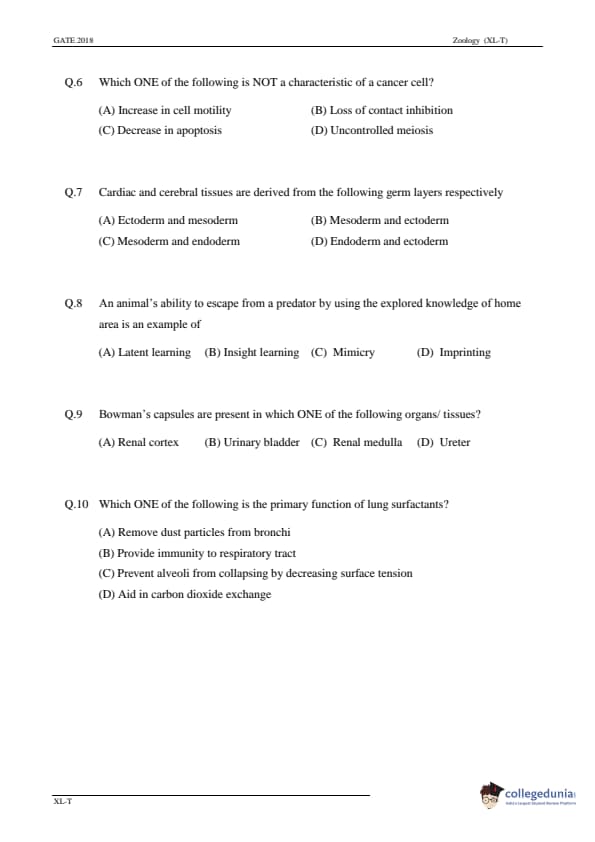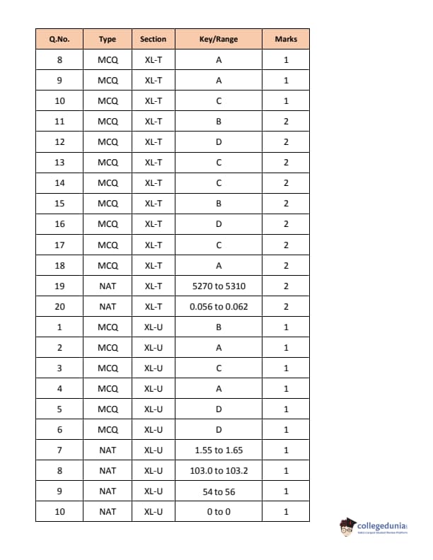| GATE 2018 XL Question Paper PDF | GATE 2018 XL Answer Key PDF |