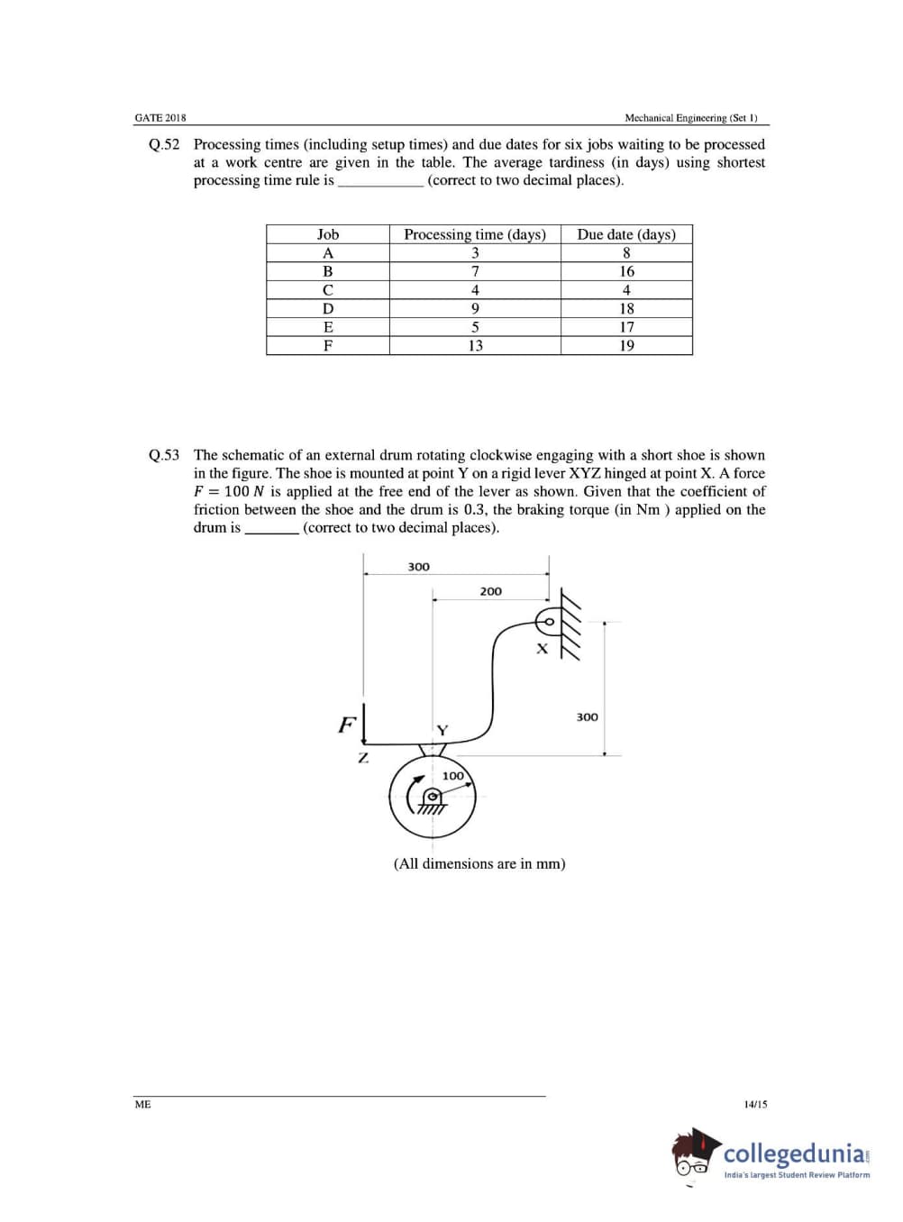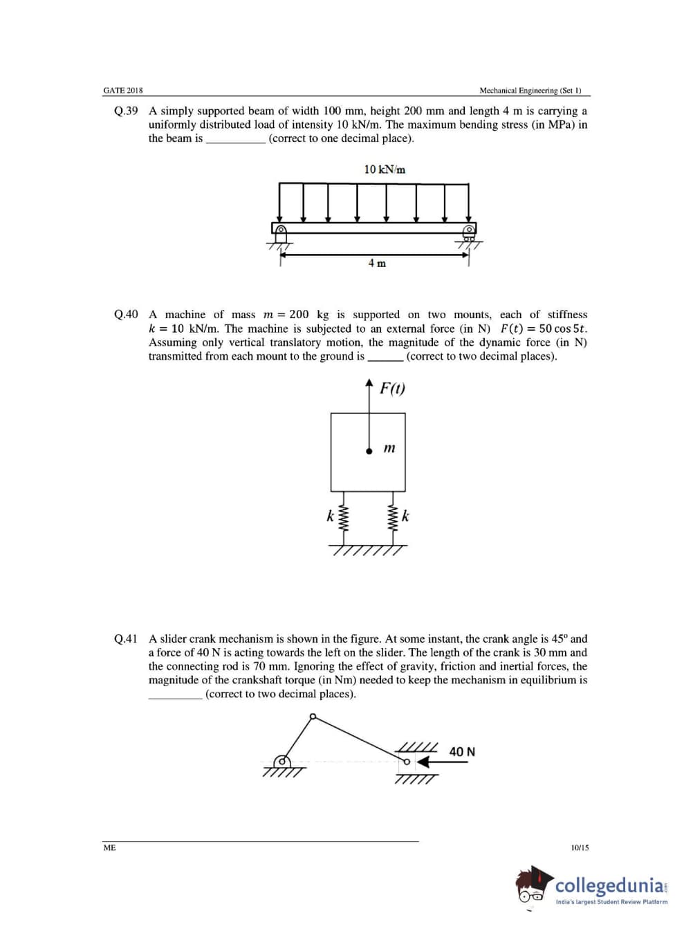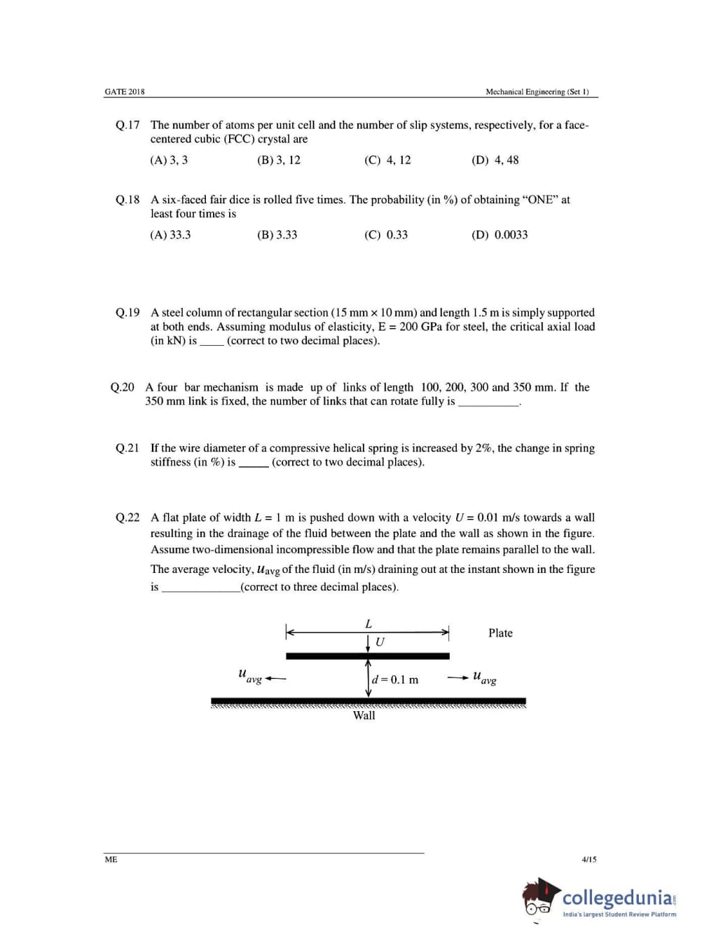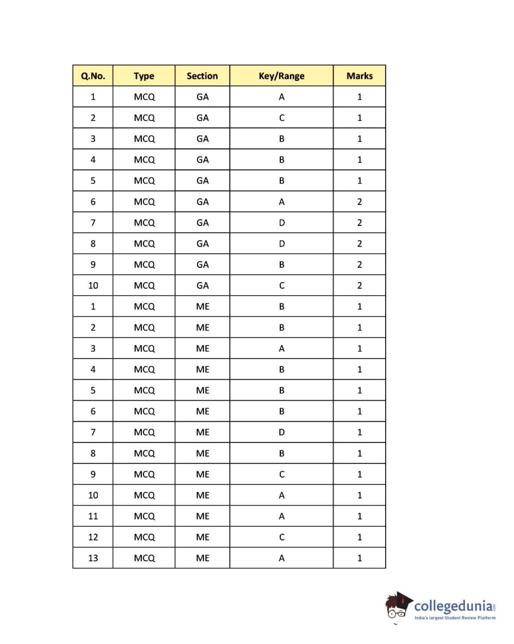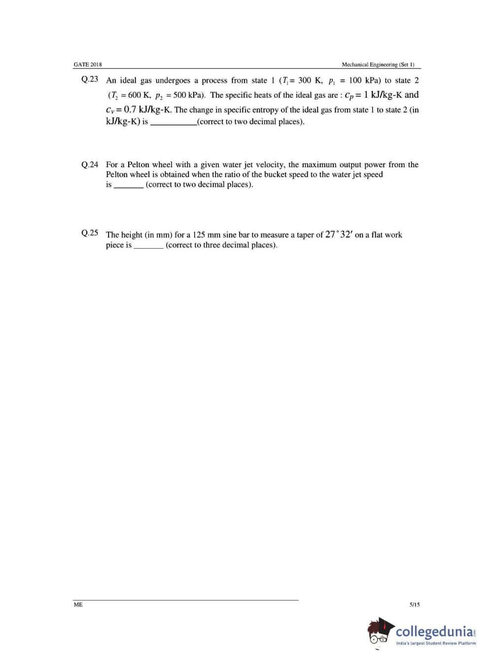 GATE 2018 Mechanical Engineering (ME) Question Papers with Answer Key PDFs- Slot 1 (February 03- Forenoon Session)