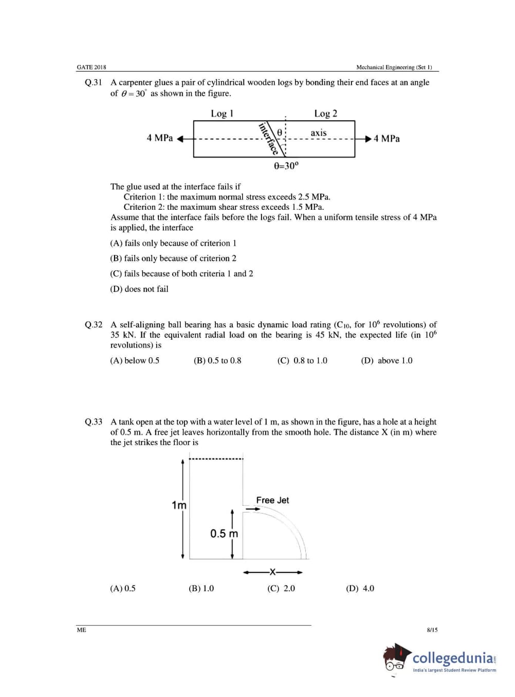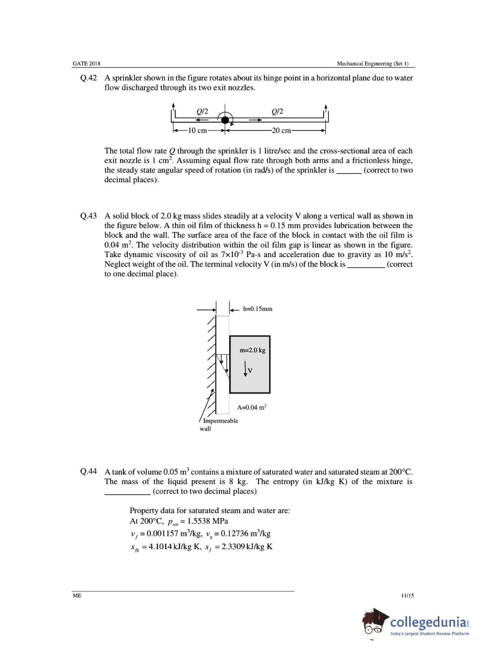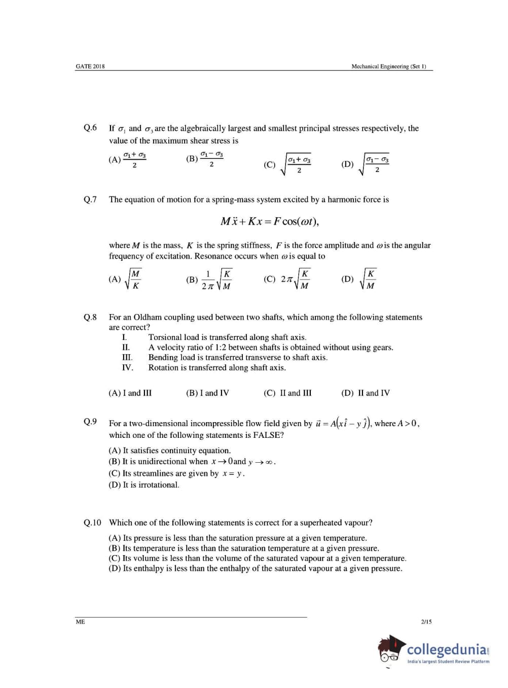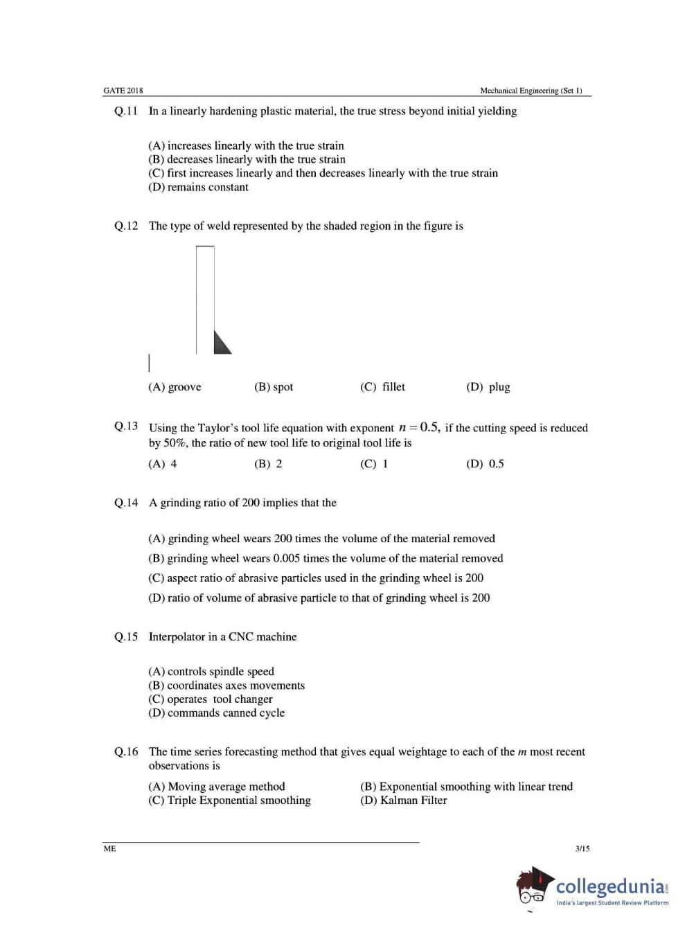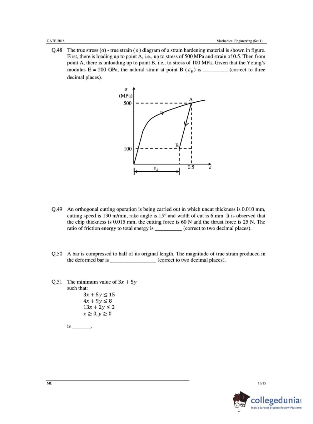 GATE 2018 Mechanical Engineering (ME) Question Papers with Answer Key PDFs- Slot 1 (February 03- Forenoon Session)