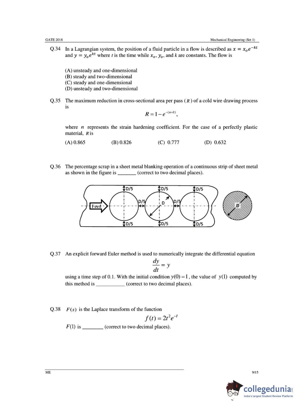 - Questions asked on the topics of ECM, Sheet Metal, Metal cutting in Manufacturing Engineering were difficult while the topics of Mean Value Theorem, Probability, Euler’s Method, Rank, Analytic Function, Laplace Transform from Engineering Mathematics were found easy.