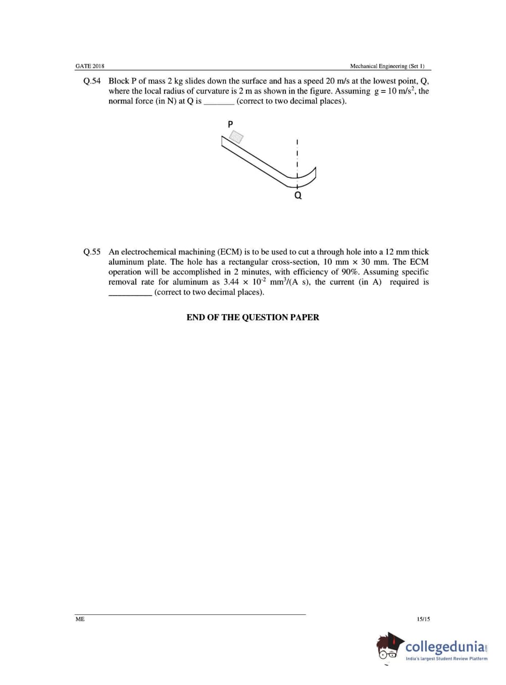 GATE 2018 ME Question paper with answer key PDFs for Slot 1 is available for download. The exam was successfully conducted by IIT Guwahati on February 03, 2018 in the forenoon session. The difficulty level of the GATE ME Question Paper for Slot 1 was moderate. There were a total of 65 questions in the question paper from General Aptitude, Engineering Mathematics and Mechanical Engineering.