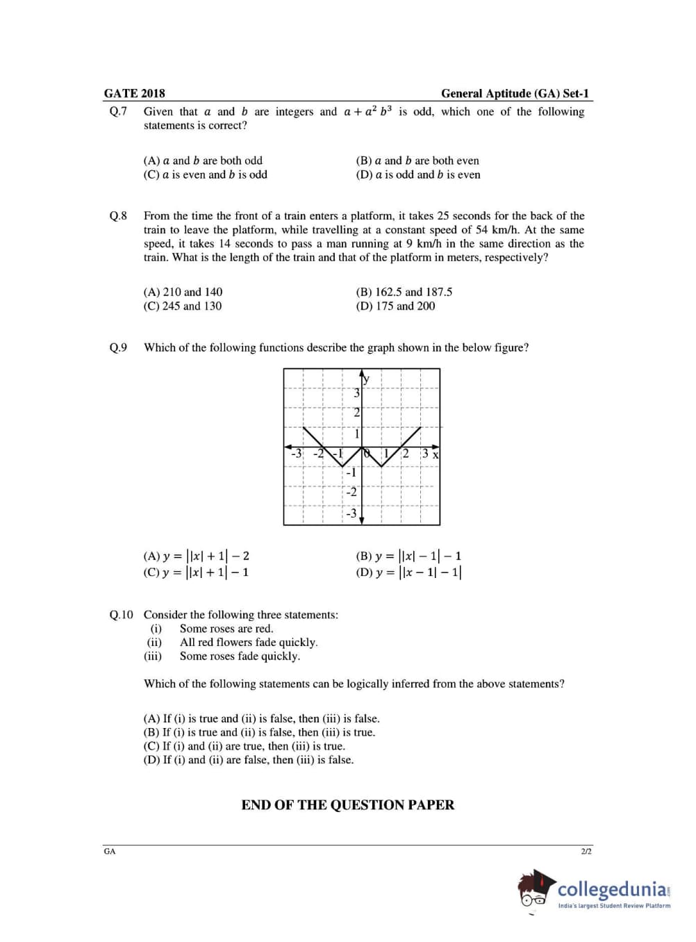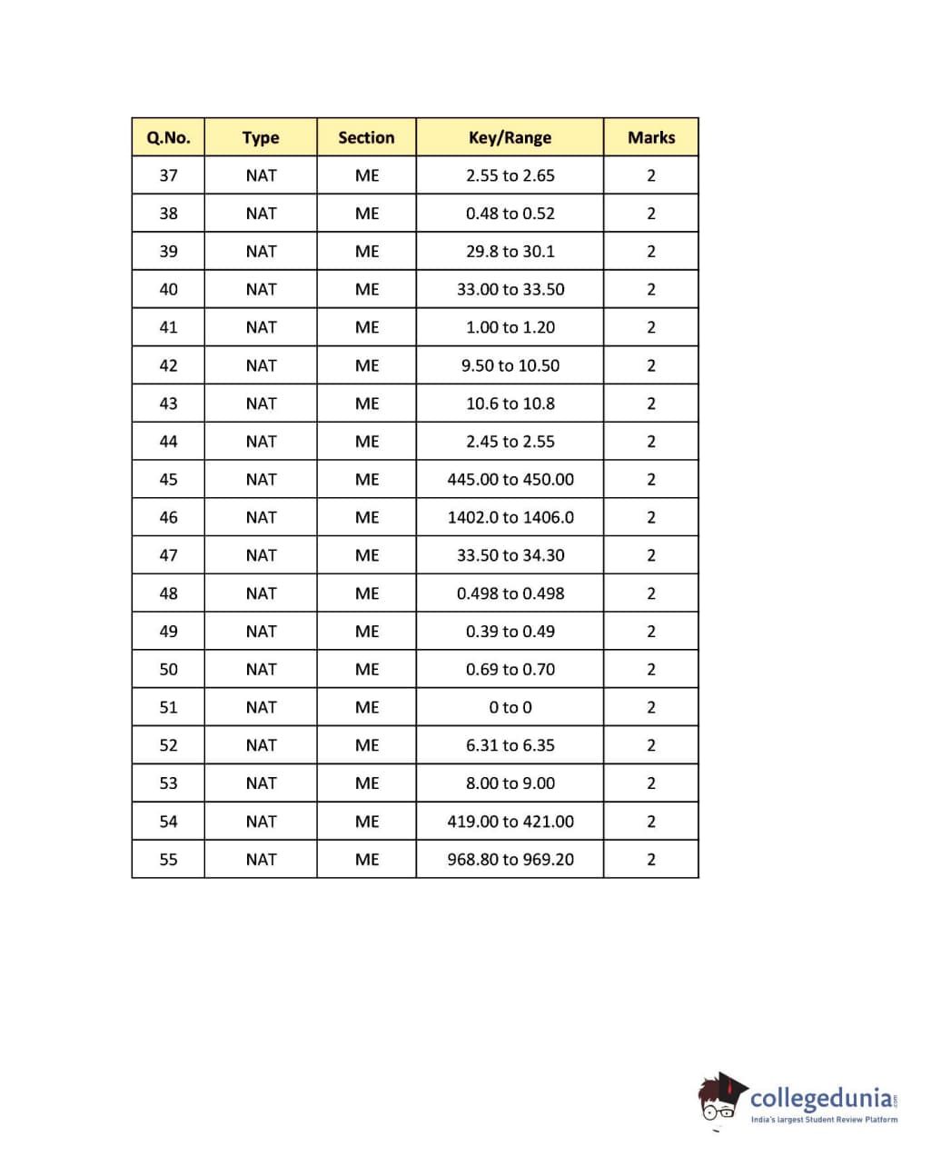 - There were a total of 65 Multiple-choice type questions and NAT questions. The first section included 10 questions based on General Aptitude which was rated as ‘easy’.