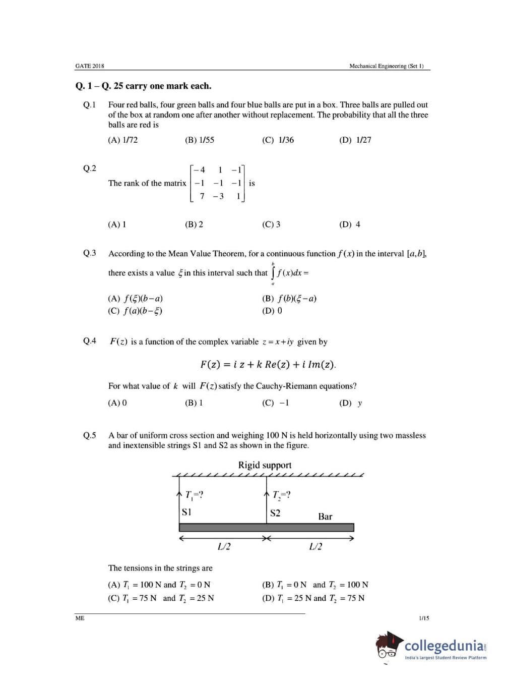 GATE 2018 ME Question Paper (Slot 1): Detailed Analysis