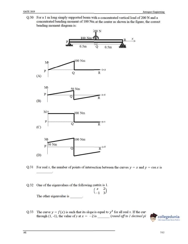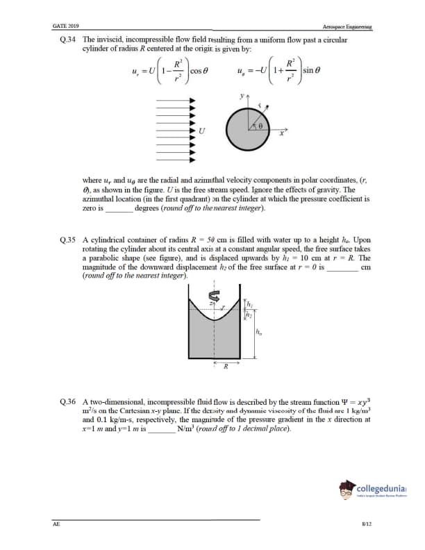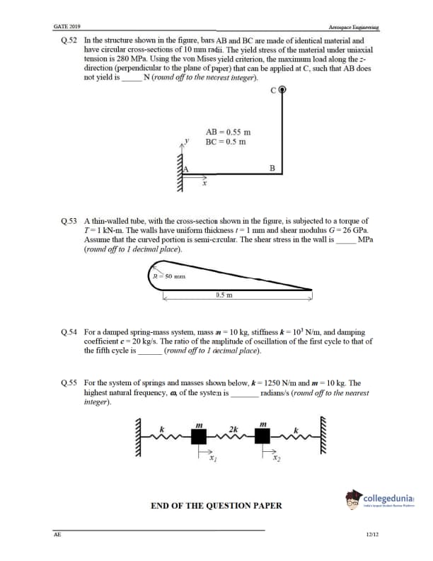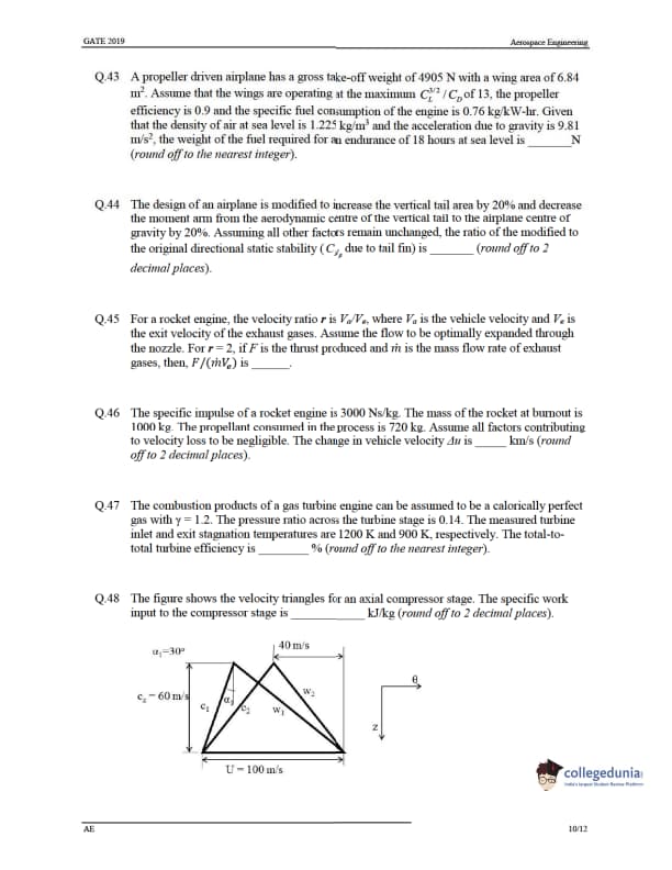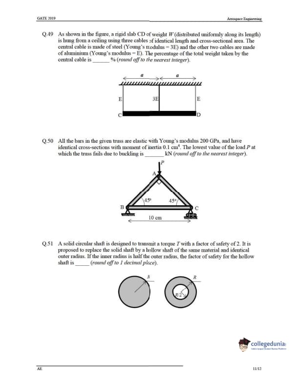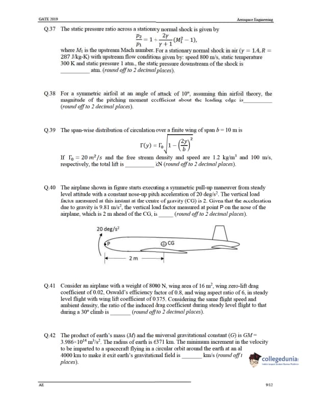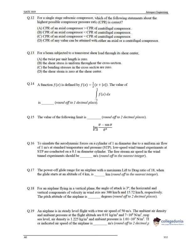 GATE 2019 Aerospace Engineering (AE) Question Paper with Answer Key PDF -Afternoon Session
