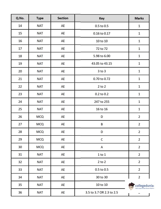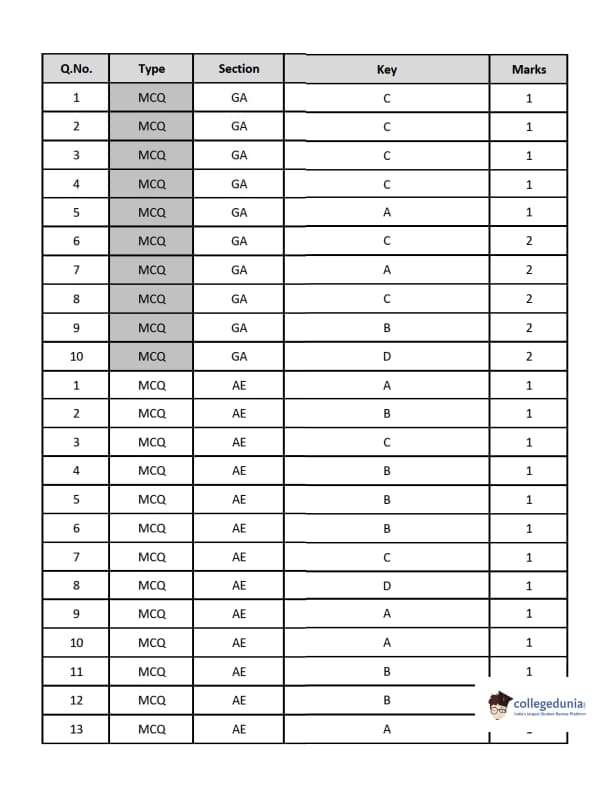 | GATE 2019 Aerospace Engineering (AE) Question Paper PDF | GATE 2019 Aerospace Engineering (AE) Answer Key PDF |