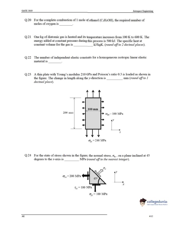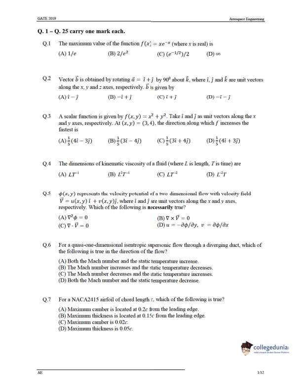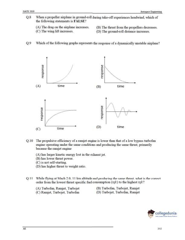 GATE 2019 Aerospace Engineering (AE) Question Paper with Answer Key pdf is available for download. The exam was conducted by IIT Madras on Feb-03 in the Afternoon Session. The question paper comprised a total of 65 questions from General Aptitude and Aerospace Engineering (AE) topics.