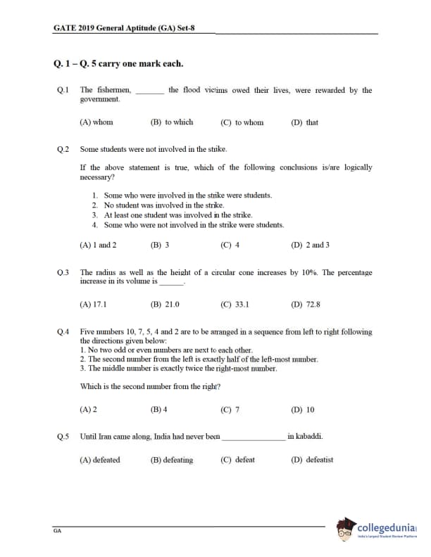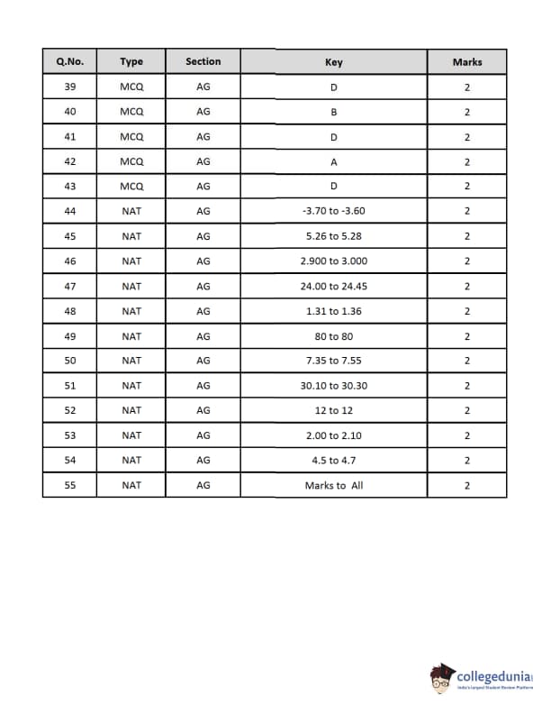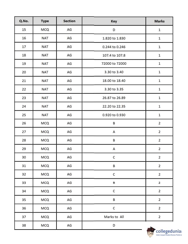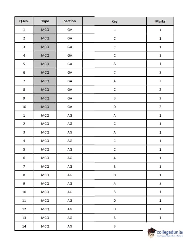 | GATE 2019 Agricultural Engineering (AG) Question Paper PDF | GATE 2019 Agricultural Engineering (AG) Answer Key PDF |