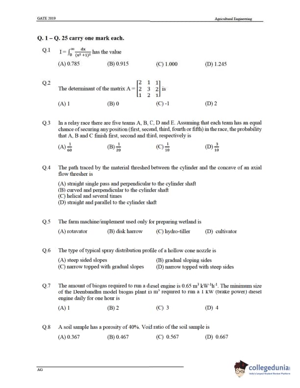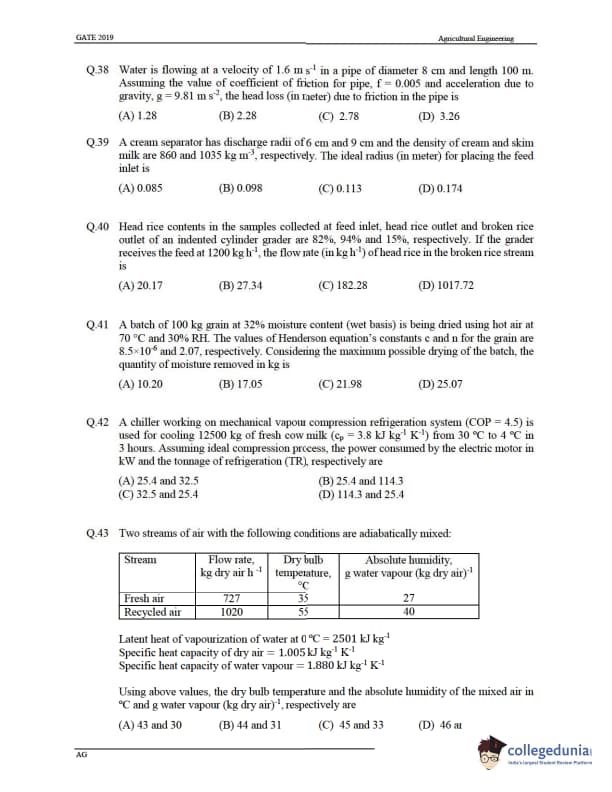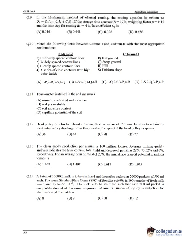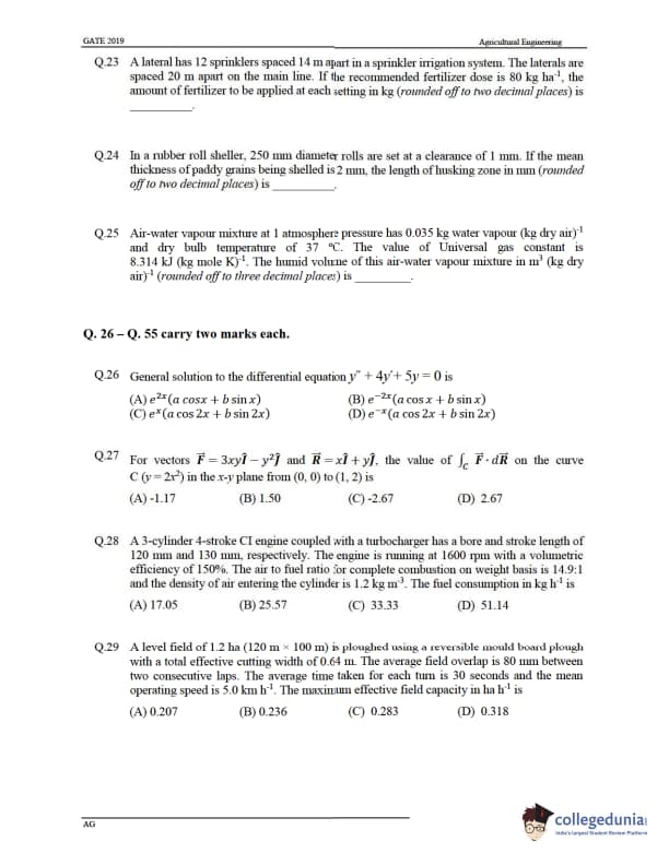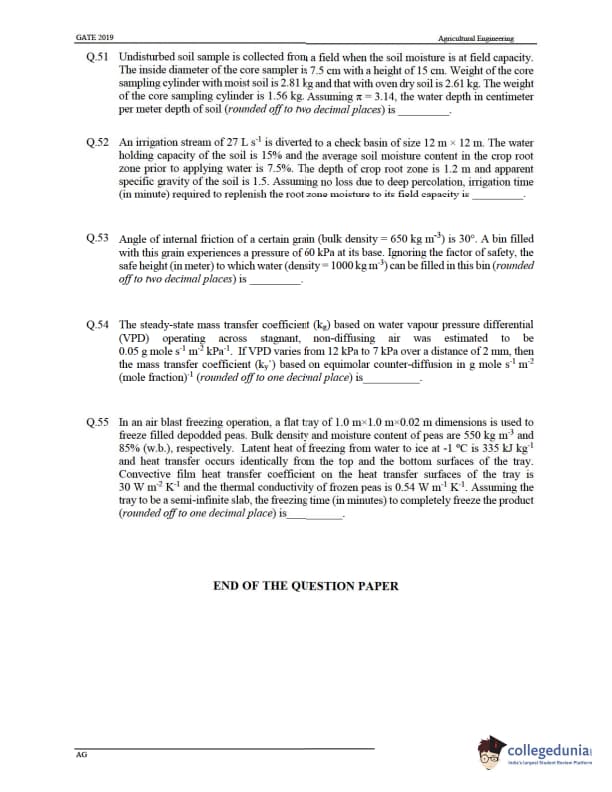 GATE 2019 Agricultural Engineering (AG) Question Paper with Answer Key PDF -Afternoon Session