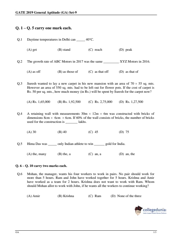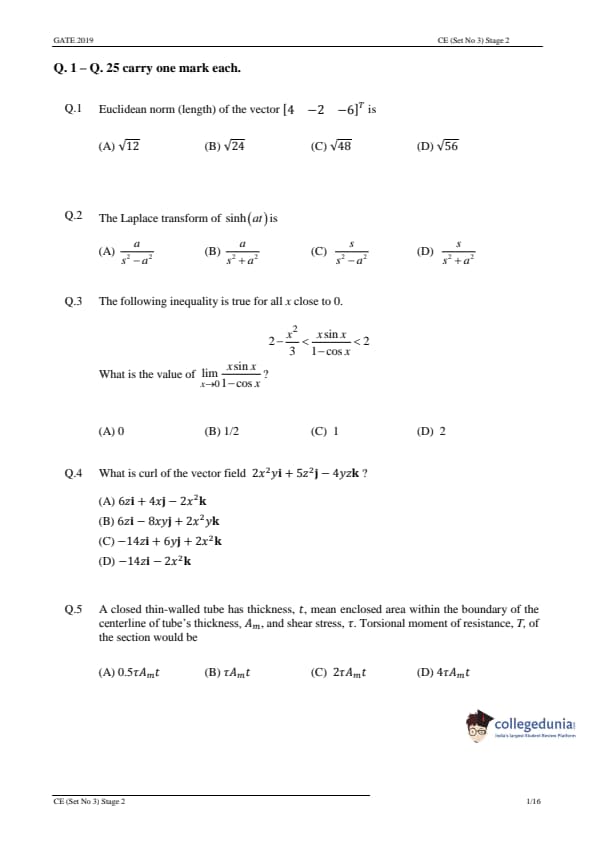| GATE 2019 Question Paper | GATE 2018 Question Paper | GATE 2017 Question Paper |