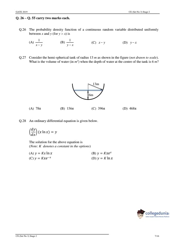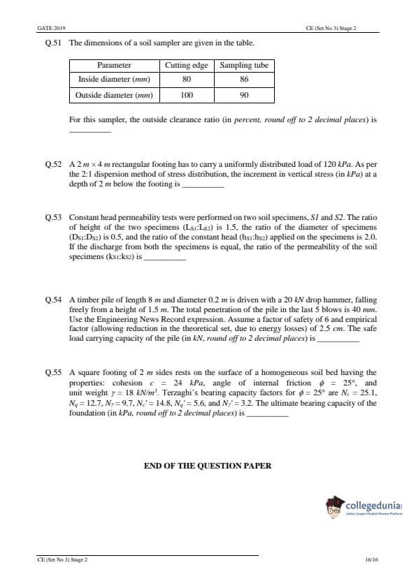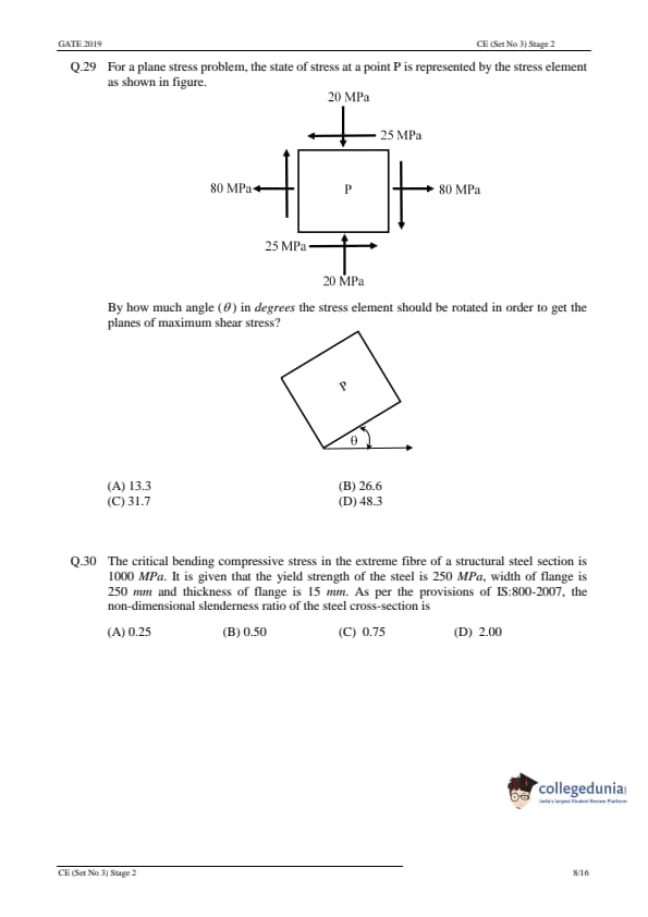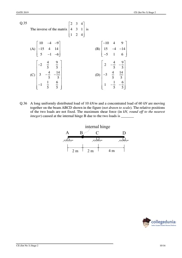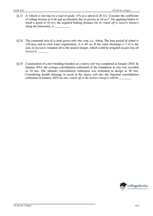 GATE 2019 CE Question Paper with Answer Key-Feb 10, 2019-Slot 2 (Afternoon Session)