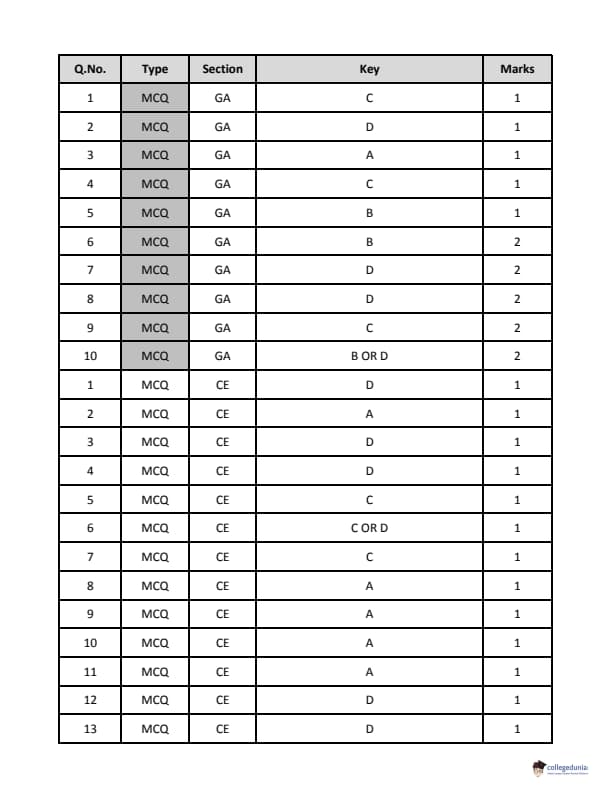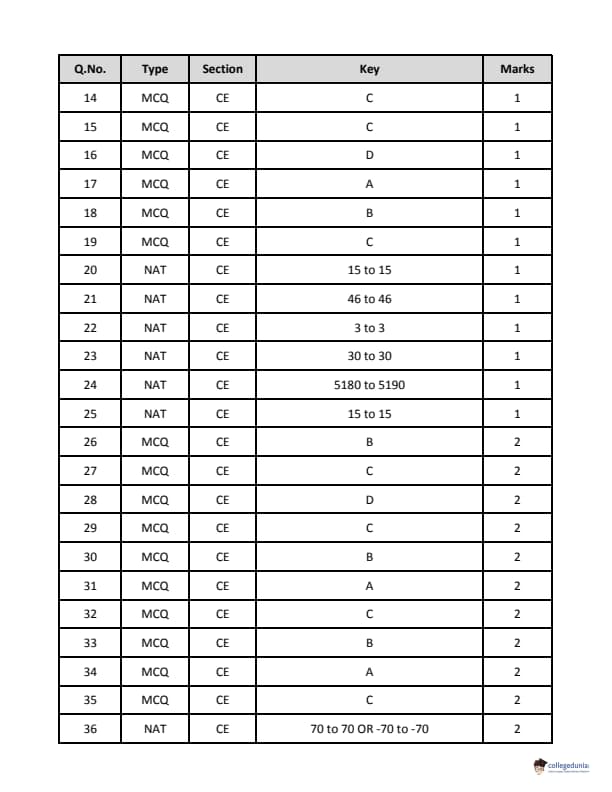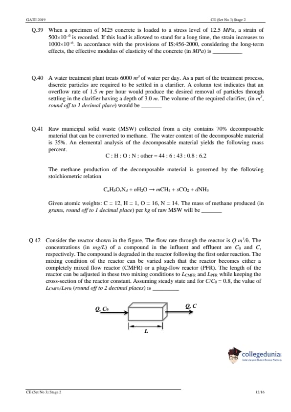 GATE 2019 CE Question Paper with Answer Key PDFs for the exam conducted in the afternoon session is available for download. IIT Madras conducted GATE 2019 CE in 2 sessions i.e. the forenoon and the afternoon sessions on February 10. The overall difficulty for the afternoon session was moderate as compared to the forenoon session. GATE 2019 CE question paper in the afternoon session consisted of a total of 26 NAT questions out of the total 65 questions.